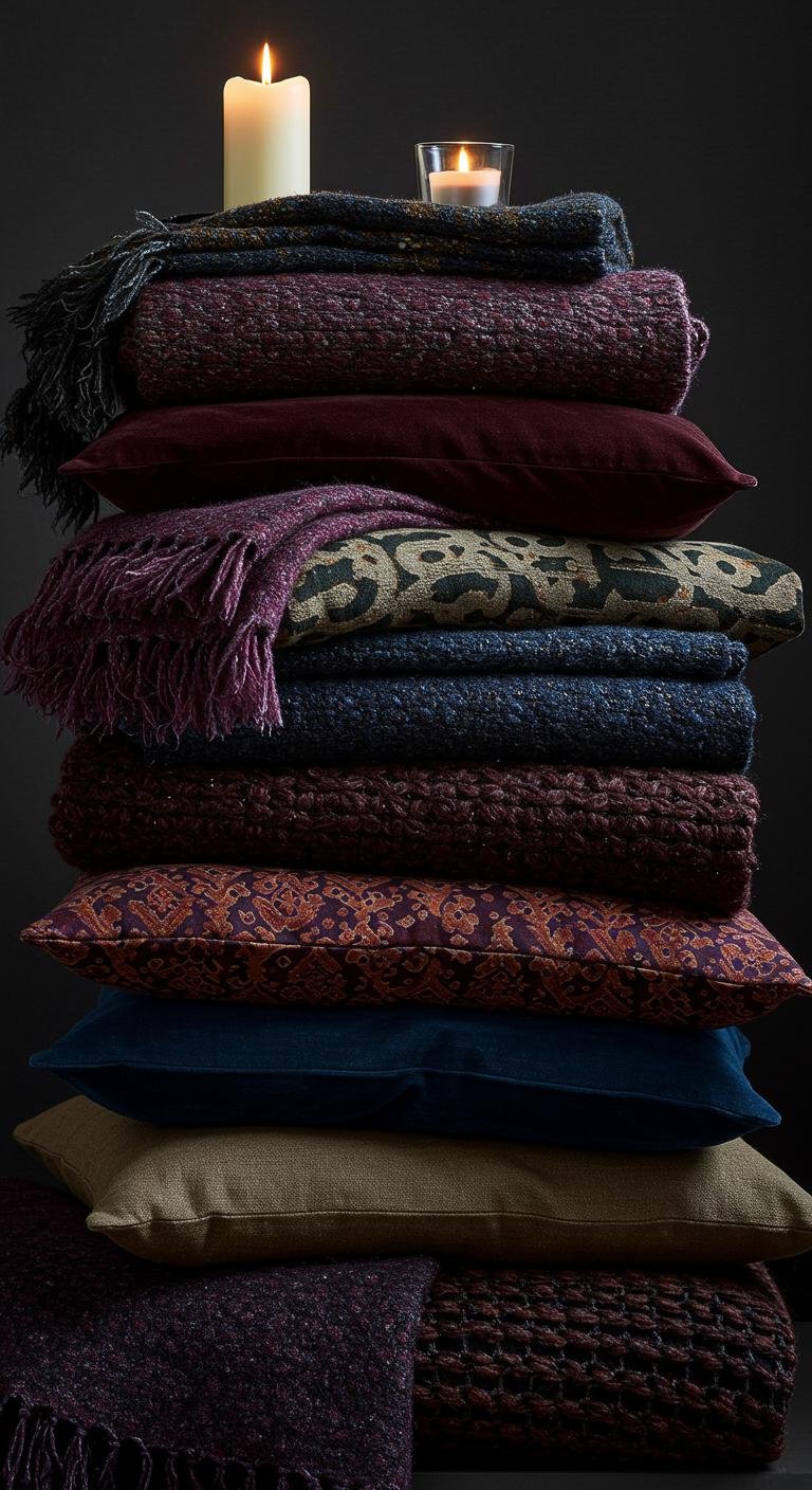 Want to up the cozy factor? Textured pillows are your best friend. Chunky knits and soft velvet cushions in emerald green or deep reds turn any seating area into a snug getaway perfect for cuddling up with loved ones.