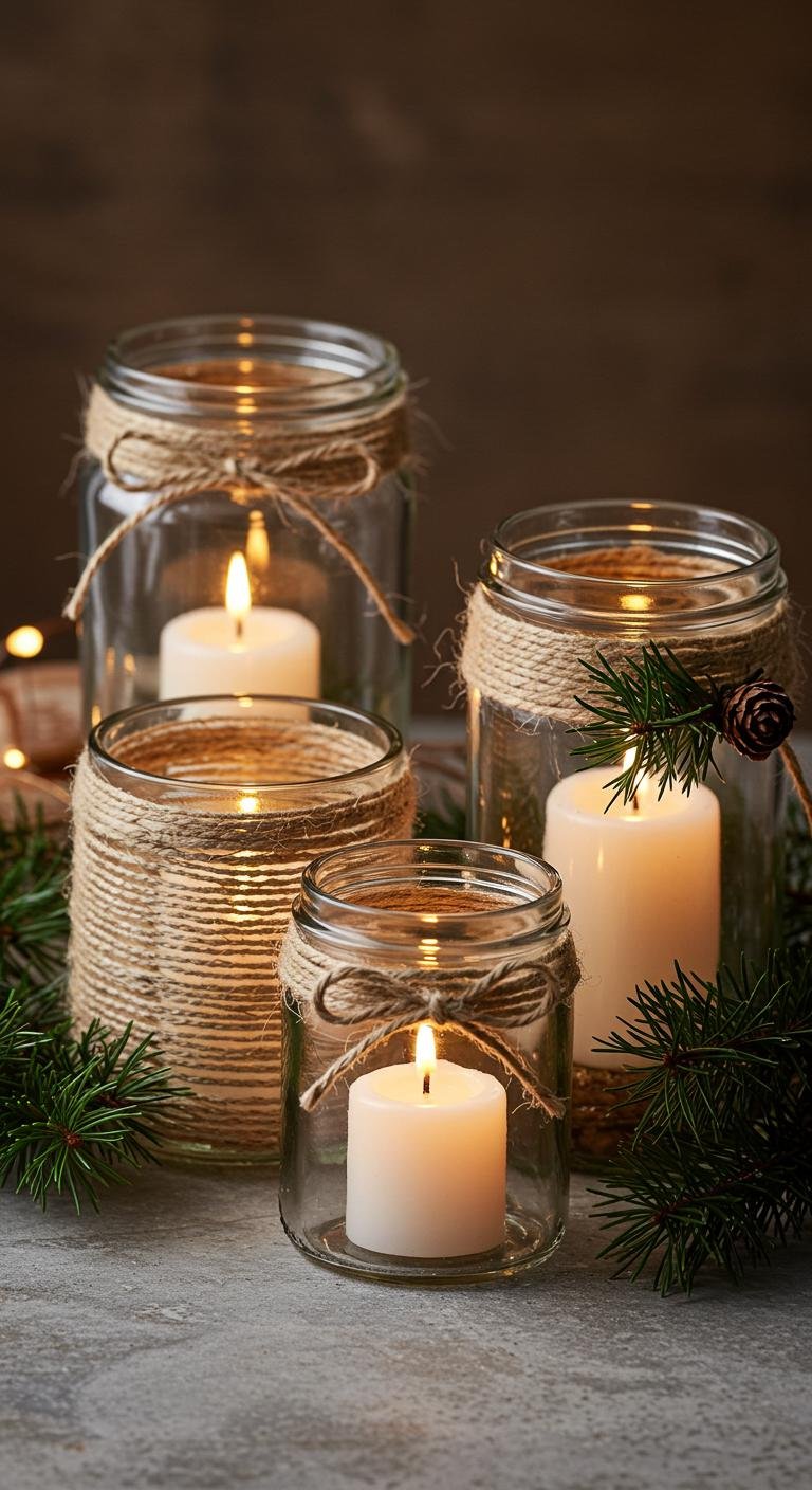 Got empty glass jars lying around? Transform them into adorable candle holders by wrapping with twine and fresh pine sprigs. Pop in some tealights, and bam—you’ve got instant warm, rustic ambiance for any festive gathering.