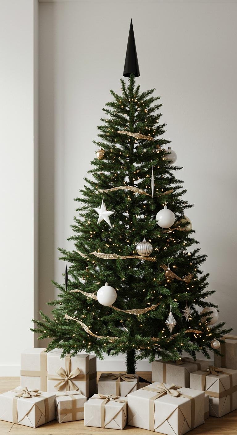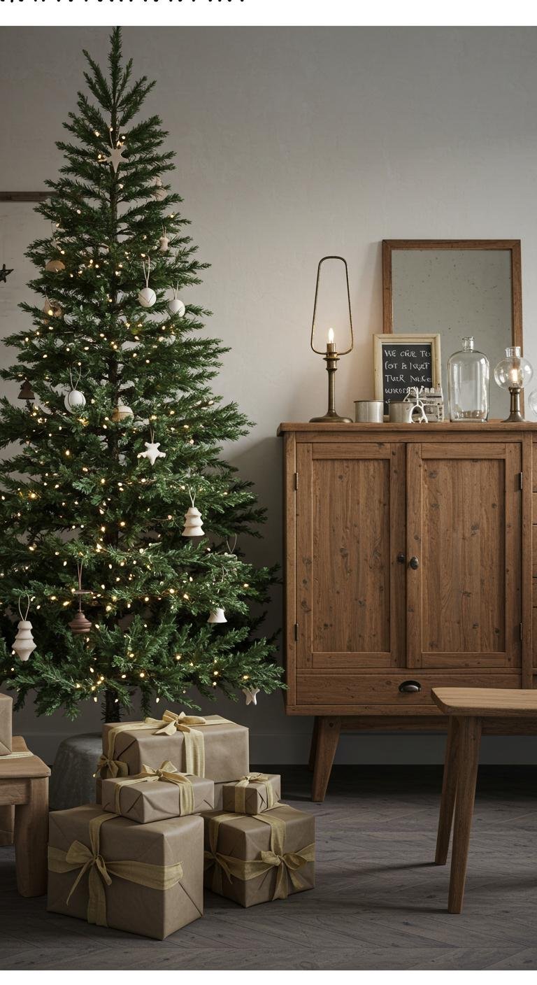 Want a look that’s both fresh and nostalgic? Mix sleek, modern lines with vintage charm. Imagine a contemporary tree decked out with classic old-school ornaments—it’s a stylish mash-up that’s super eye-catching. Hunt for modern pieces at thrift shops or in your attic, and then unify everything with thoughtful colors and textures. This combo is just plain cool.