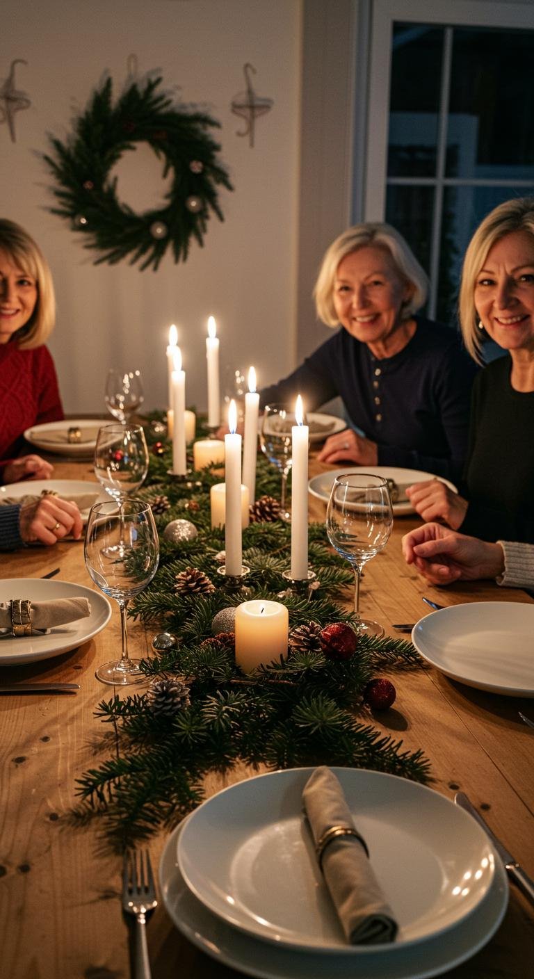Lighting can totally transform your holiday scene. Wrap warm white fairy lights around garlands, drape them on your tree, or hang them window-side for a magical glow. Pair with dimmable candles to set the mood. Battery-operated lights are budget-friendly and super easy to use—perfect for adding that cozy, inviting twinkle.