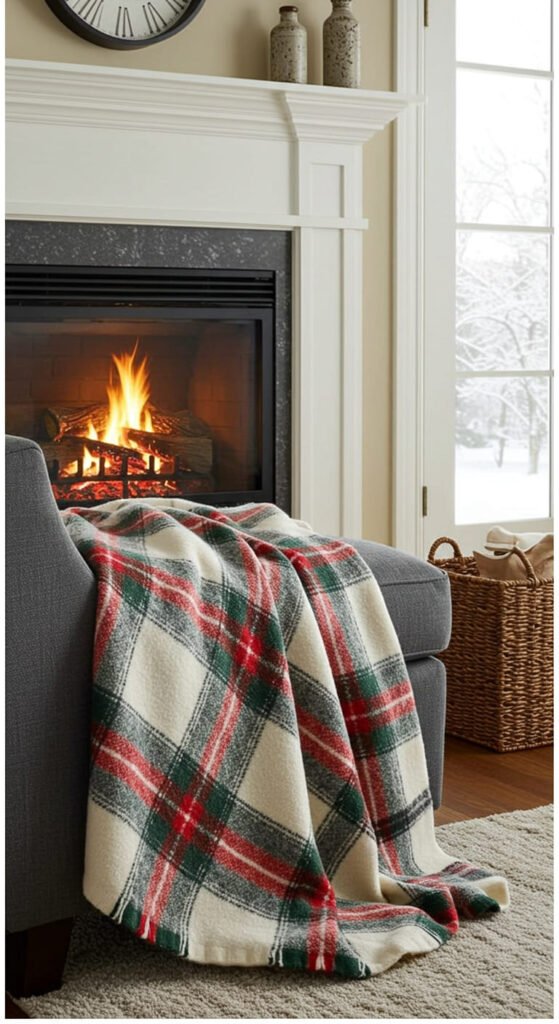 Plaid Throw Blankets for a Warm Fireplace Scene