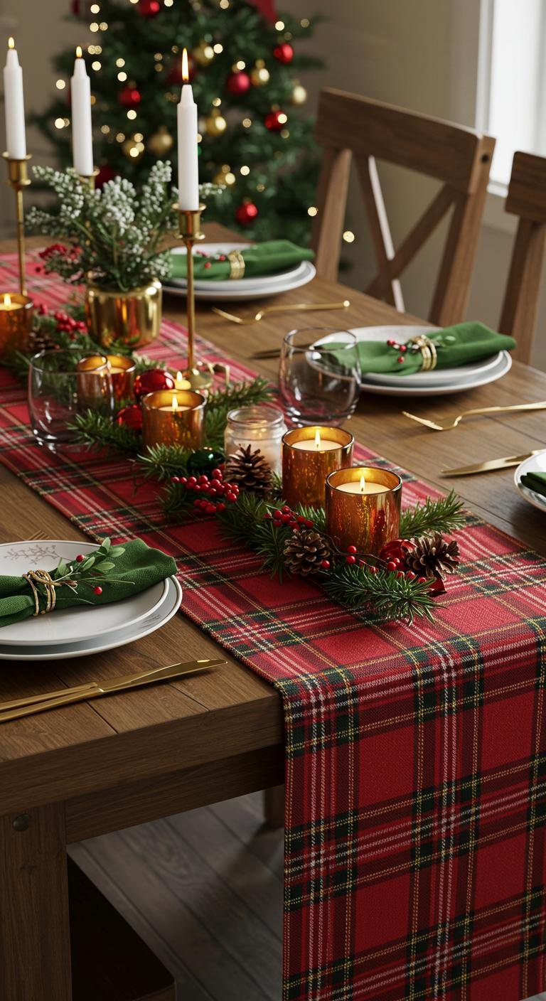 Transform your holiday dining experience with charming plaid table settings that emanate warmth and festivity.