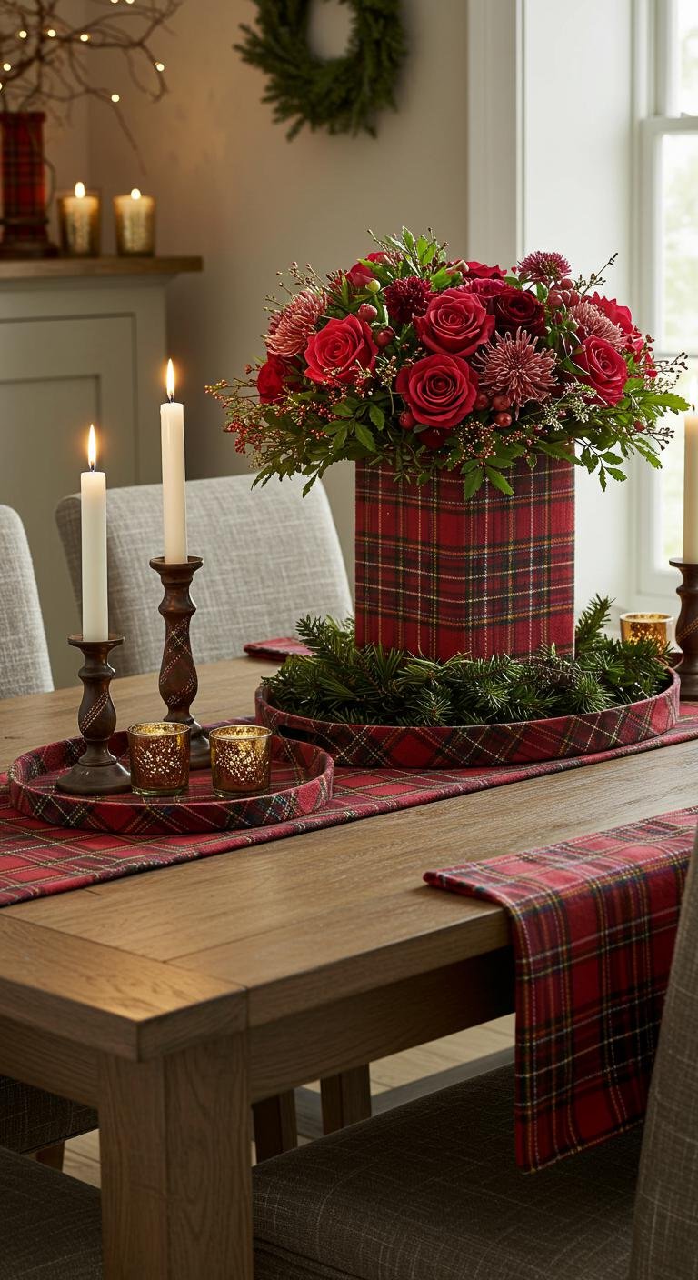 Once you’ve set the mood with your cozy plaid candle holders, it’s time to elevate your table decor with unique plaid centerpieces.