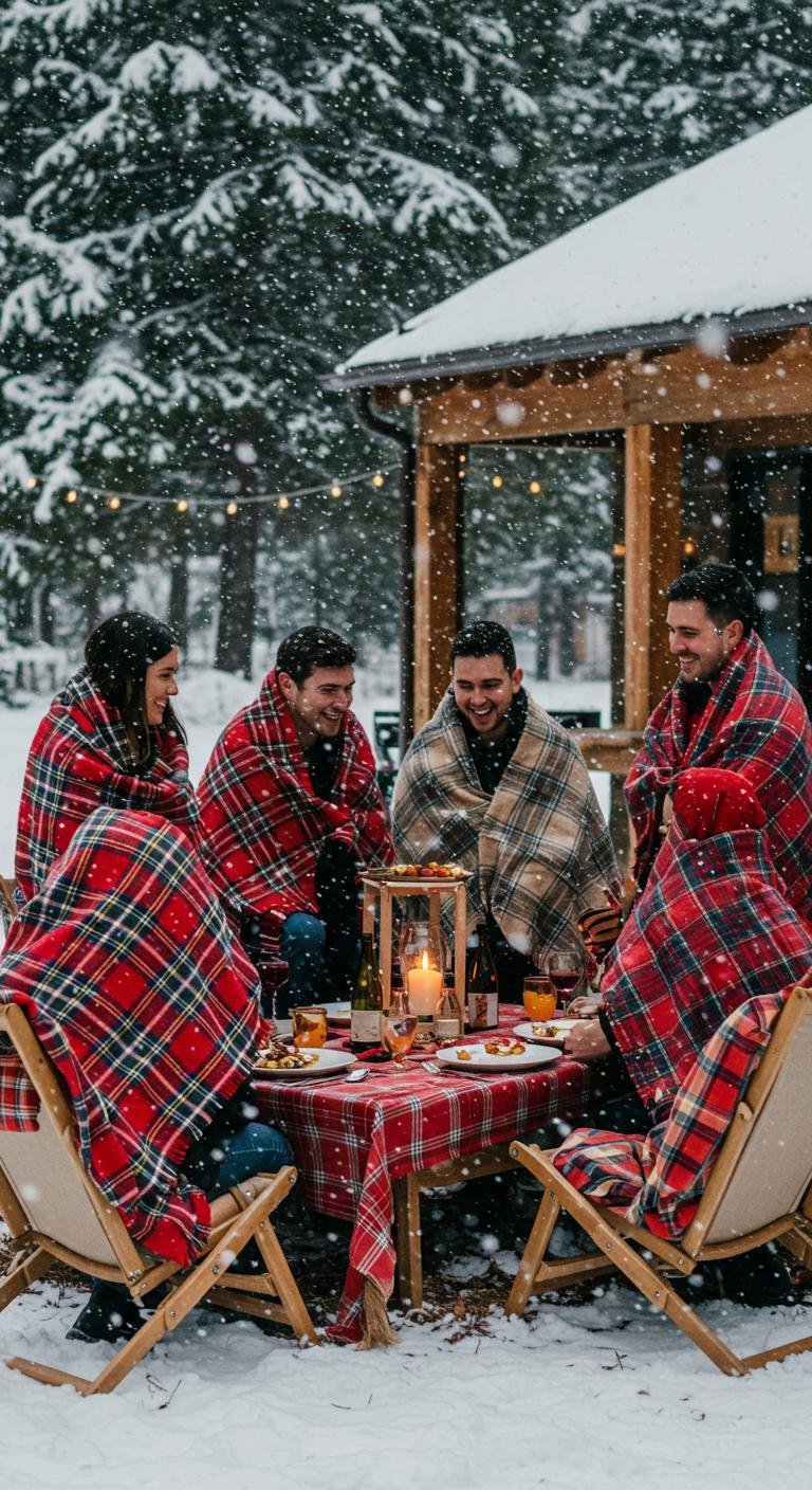 While enjoying the crisp winter air at your outdoor gatherings, nothing says cozy quite like wrapping up in warm plaid blankets.