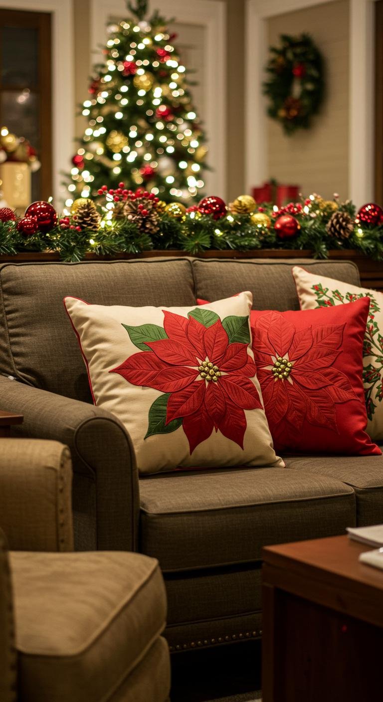 Embellishing your home with decorative poinsettia pillows instantly brings a touch of holiday magic into your living spaces.