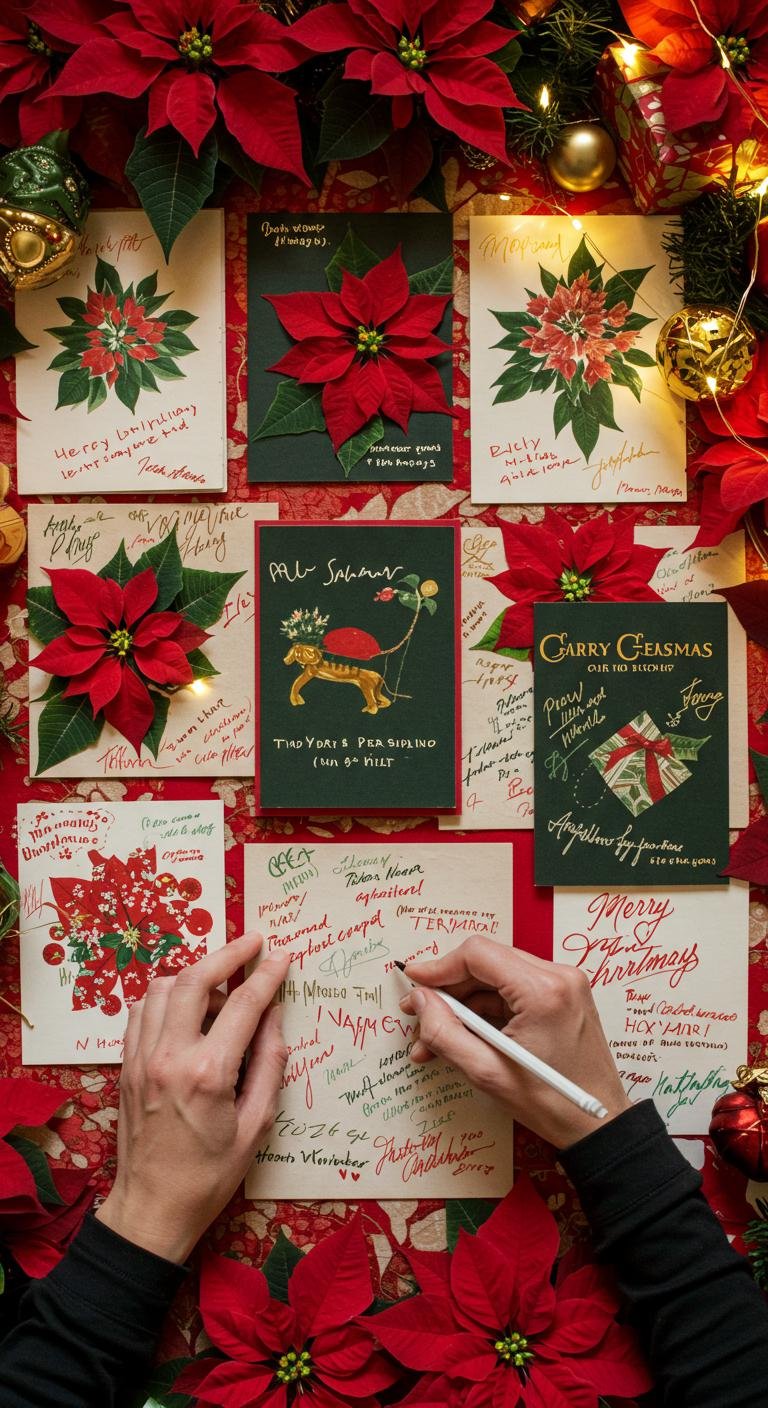 After creating a stunning poinsettia backdrop for your holiday gatherings, consider extending that festive spirit to your holiday cards.