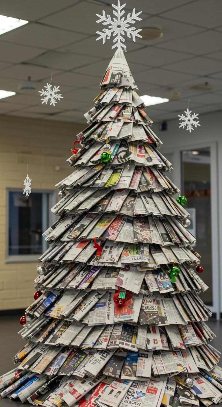 You might find that your craft sessions don’t have to end with the snowflakes from plastic spoons. Transform old newspapers into a stunning Christmas tree! Use various newspaper patterns to create layers, turning them into tree decorations. Fold, cut, and glue to bring your eco-friendly masterpiece to life. It’s a creative way to celebrate the season, embracing sustainability with joy and flair!