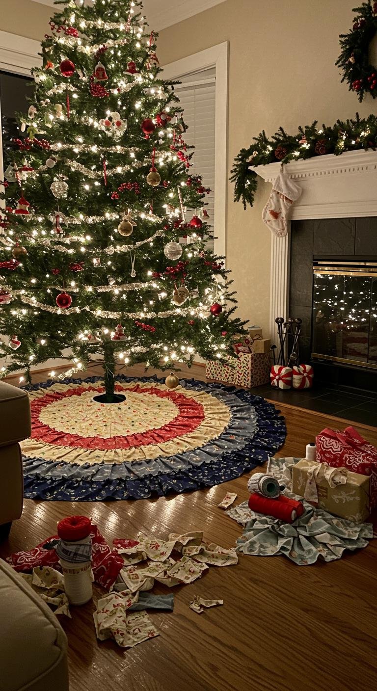 Creating a fabric scrap tree skirt can add a cozy touch to your holiday decor and help you use up leftover materials.
