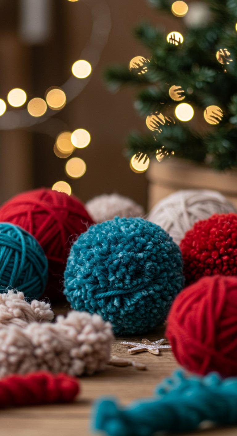 Yarn scrap pom poms are a delightful way to add a burst of color and texture to your Christmas decorations.