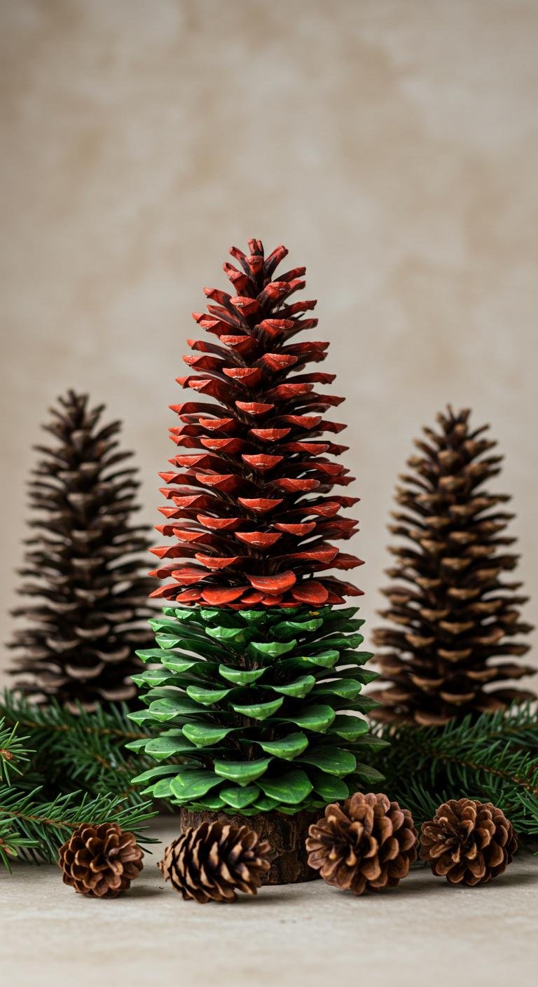 Creating Pinecone Christmas Trees is a delightful way to incorporate natural elements into your holiday decorations. You can start by collecting pinecones and engaging in some fun pinecone painting to add vibrant colors. Once painted, stack the pinecones to form trees, and finish off with a decorative pinecone garland. These charming creations bring warmth and a touch of eco-friendly cheer to your festive decor!