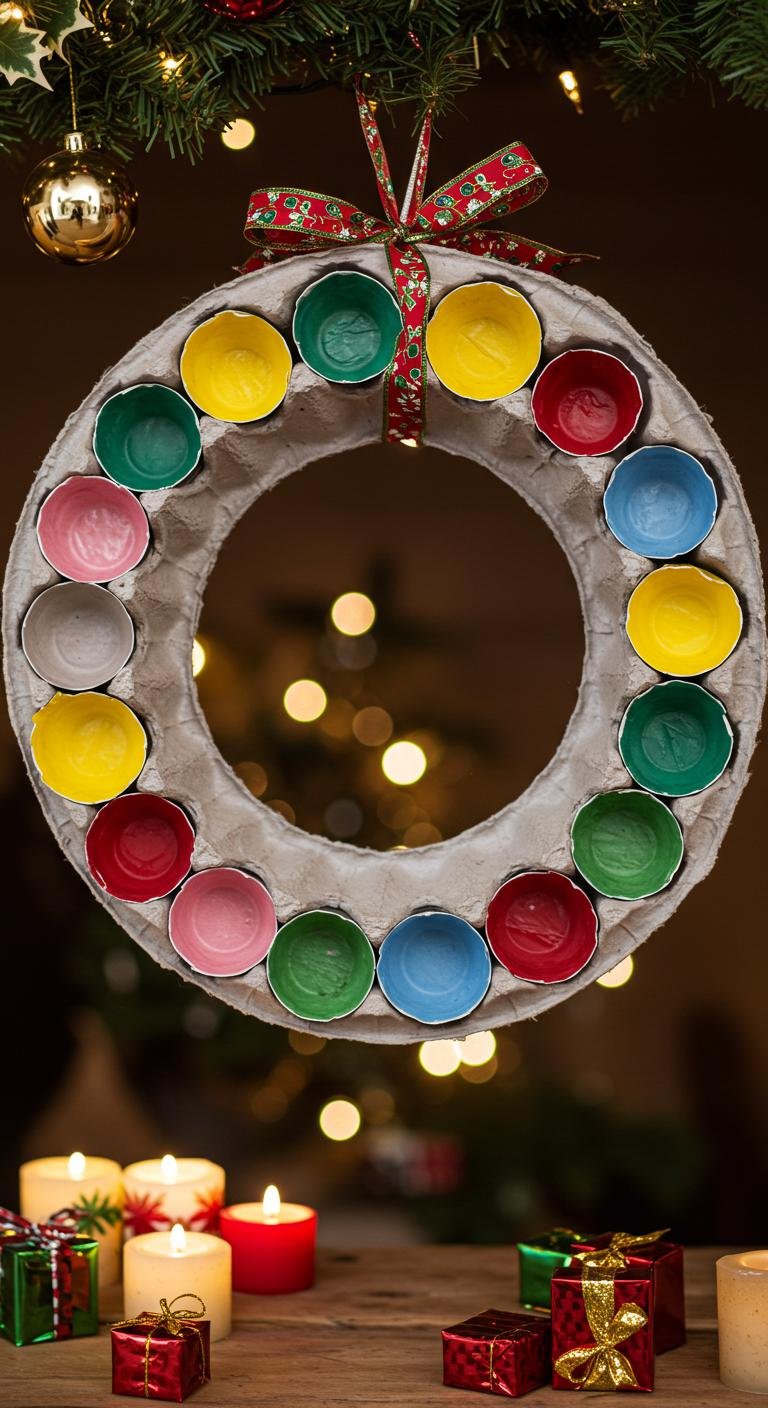 If you want to craft a unique and festive decoration this holiday season, consider making an egg carton wreath.