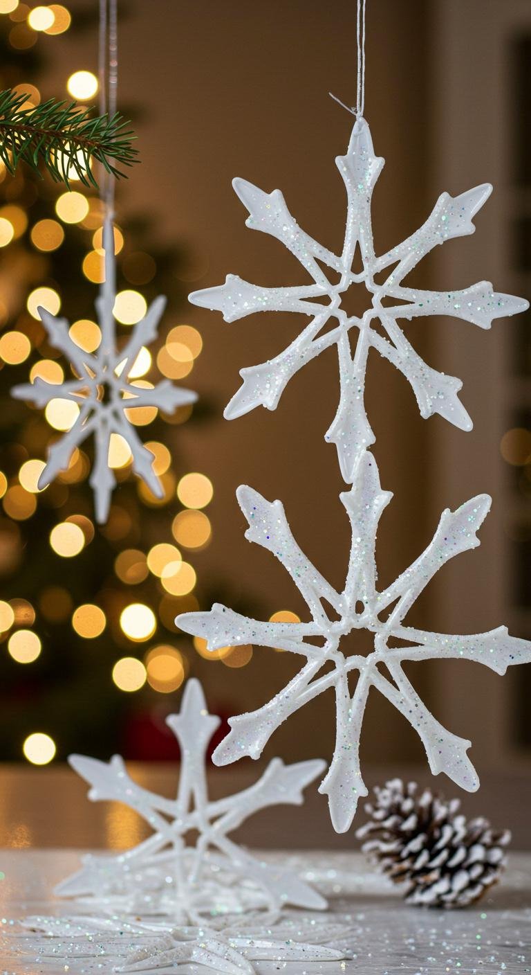 With a few simple plastic spoon crafts, you can create unique, festive DIY ornaments. Just glue the spoons in a star pattern, spray paint them white, and sprinkle with glitter for a dazzling finish!