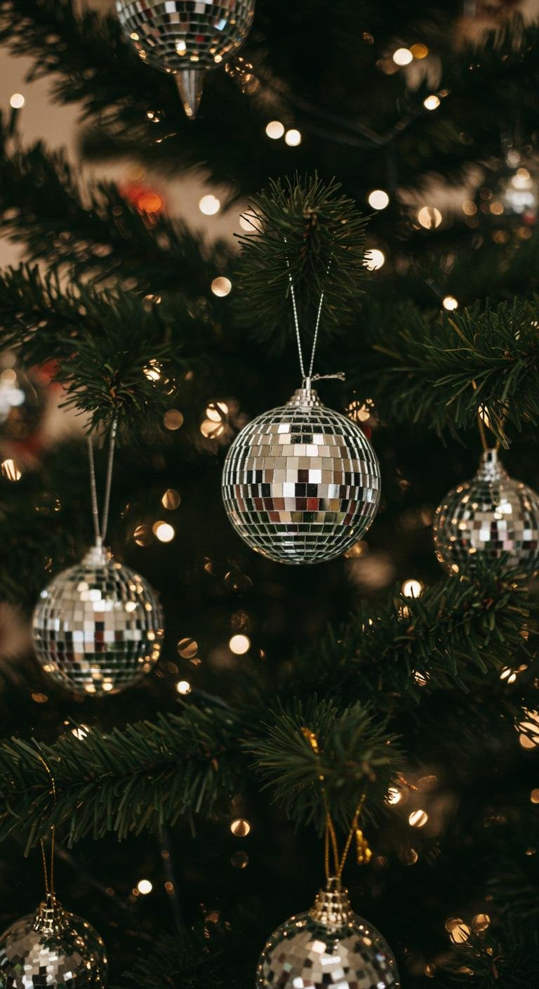 Here’s a playful one—disco ball ornaments bring a sparkling retro flair straight from the ’70s. Their shiny, mirror-like surfaces catch the light in the best way, making your tree feel fun and lively. You can find these in various sizes, or if you’re feeling crafty, wrap foam balls with tiny mirror tiles or reflective paper to make your own. They’re a joyful addition that never fails to get a smile.