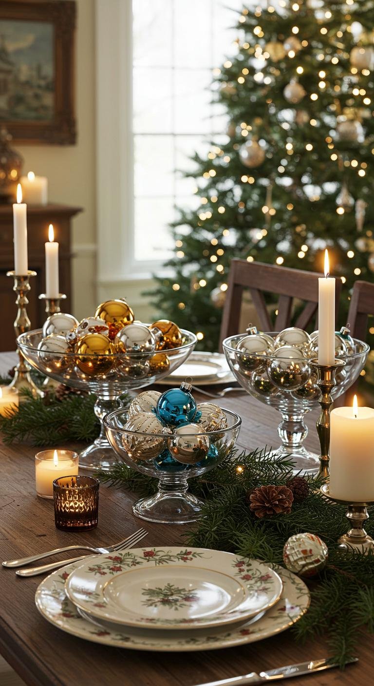 Vintage Christmas charm isn’t limited to the tree. Think festive garlands, wreaths, and tabletop displays. Placing compote bowls filled with vintage ornaments as centerpieces or mixing old candle holders with new votives sets a cozy, inviting mood. Creating garlands with fresh greenery and vintage baubles pulls the whole look together beautifully. These small touches spread the vintage joy throughout your home in a graceful, coordinated way.