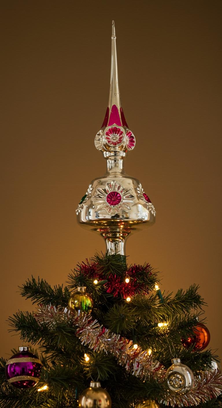 Nothing quite finishes off a vintage Christmas tree like a charming vintage tree topper. Whether it’s glass, plastic, or metal, sometimes with little lights that twinkle at the top, these pieces are like the cherry on top of your holiday masterpiece. Antique stores and online marketplaces are goldmines for unique finds. But hey, if you want to skip the splurge, crafting your own from cardboard and paint can be just as magical—add some glitter or fabric scraps to really bring the festive vibe home.