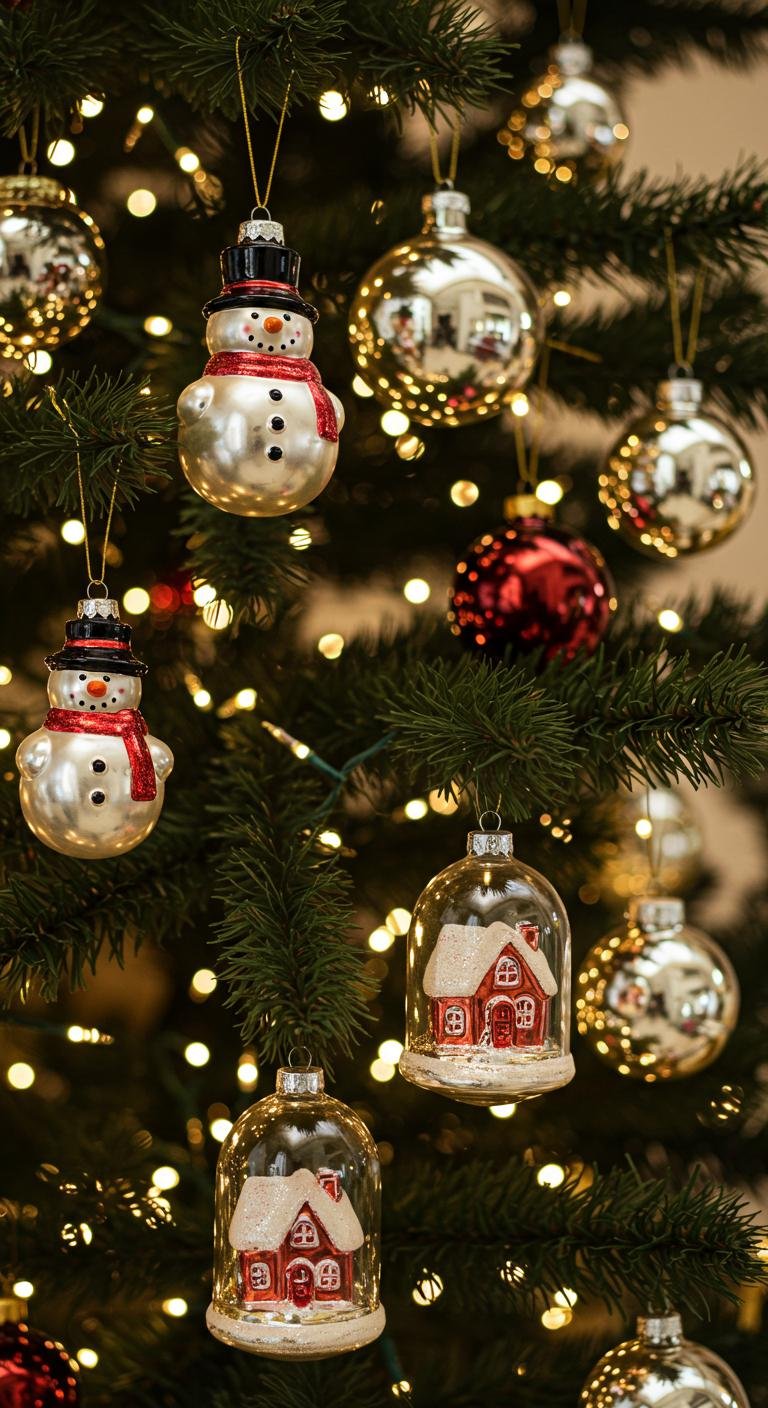 Glass ornaments totally scream vintage Christmas. They’re delicate, charming, and come in all sorts of rich colors and cool shapes. To show them off in style, try using a vintage silver punch bowl or a decorative tray instead of just hanging them on the tree—it turns them into a centerpiece! If you’re hunting for affordable finds, flea markets and online shops have some treasure troves. Or for a personal touch, grab some clear glass baubles and hand-paint them yourself. Just a few paint strokes can turn a plain ornament into a keepsake you’ll treasure every year.