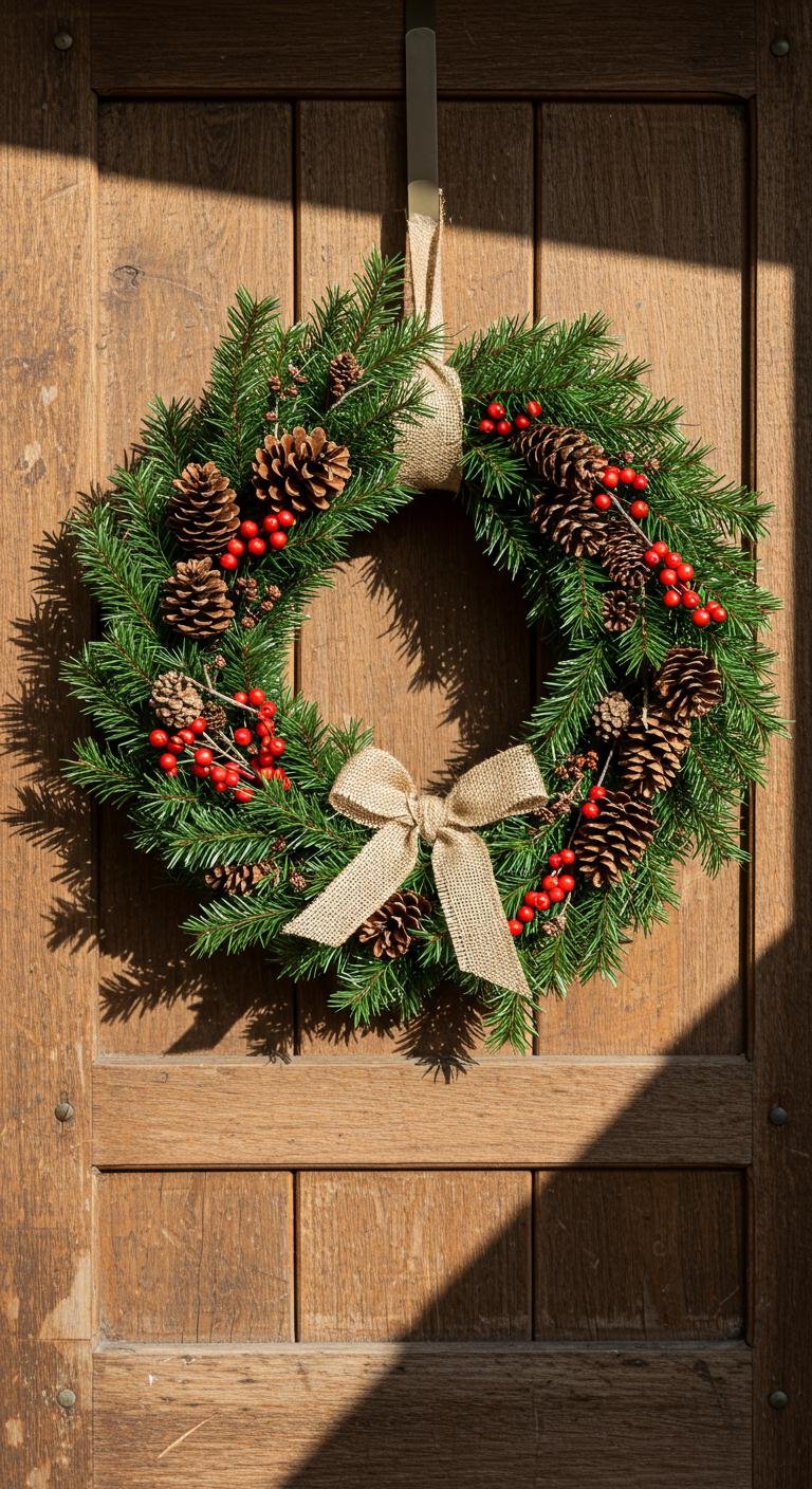Natural wreaths are basically the heart of rustic holiday decor. Gather some branches, pinecones, and dried flowers, then wrap them around a wire frame starting with lots of greenery—pine, eucalyptus, cedar—all good stuff. For that extra festive scent and look, add cinnamon sticks or dried orange slices. Hang it on your door or above the mantel, and suddenly your whole space feels welcoming and merry.