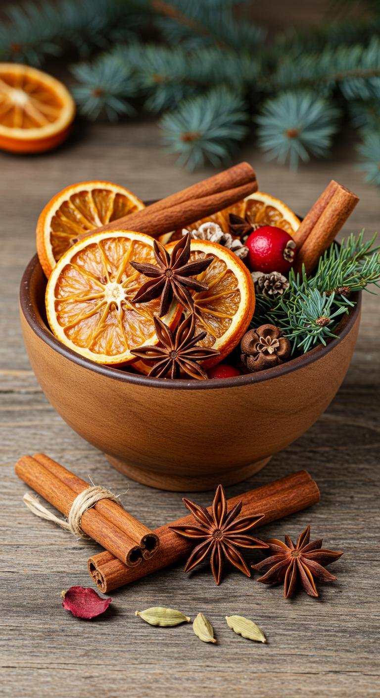 Potpourri is such a sweet, simple way to fill your home with holiday scents. Mix dried orange peels, spice sticks like cinnamon or cloves, and evergreen sprigs in a bowl, and you’ve got a charming centerpiece that smells like Christmas itself. Adding your favorite family spices makes it even more special. Plus, it’s super budget-friendly since you’re often using kitchen scraps or easy finds from local markets. Pro tip: invite friends over for a potpourri-making night—festive and fun!