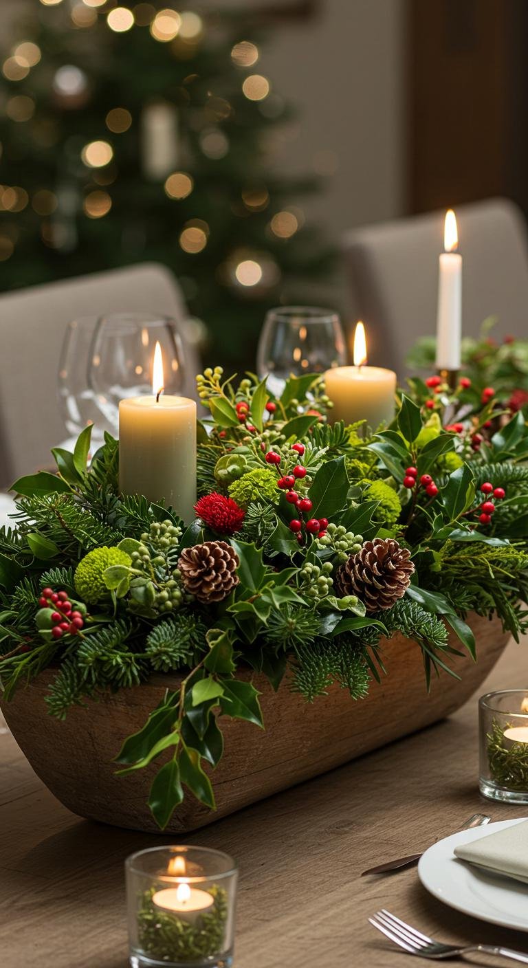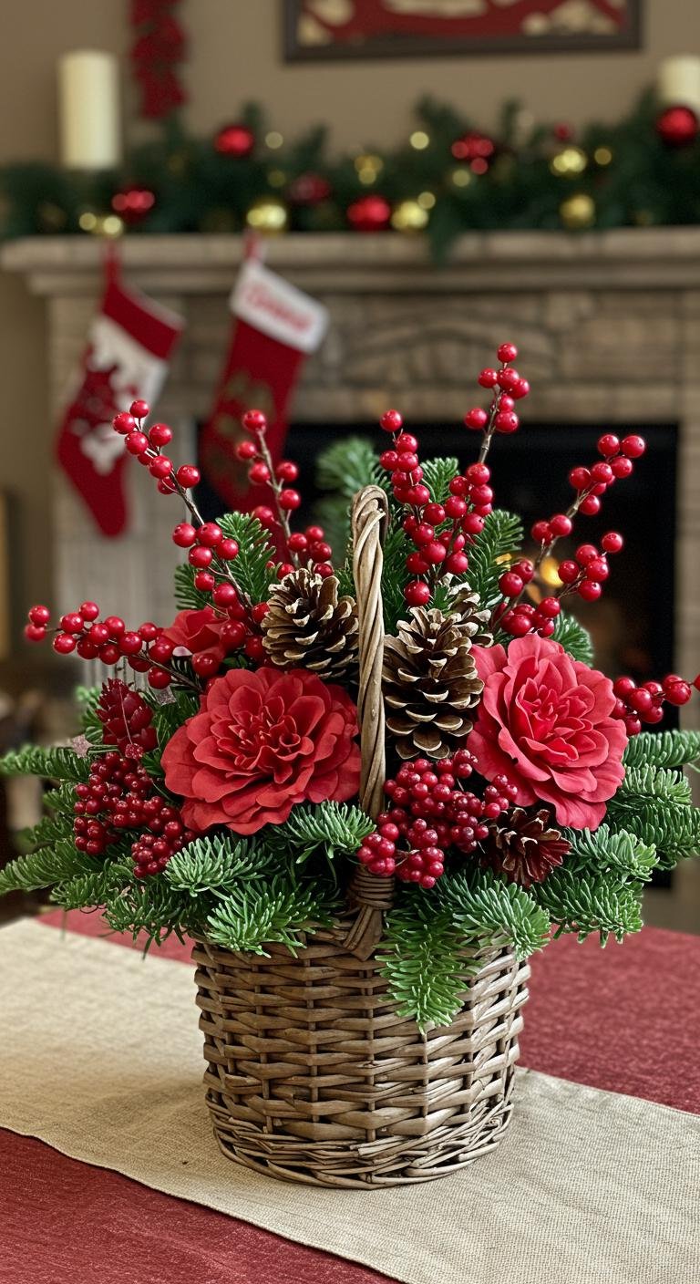 Channel that woodland vibe with a rustic arrangement full of red berries and pinecones. Starting with a wicker or wooden basket really amps up the rustic feel. Throw in sprigs of pine and a handful of ferns, and if you want some extra texture, dried flowers work beautifully too. This centerpiece is the perfect mix of simple and eye-catching for any holiday table. Bonus: you can save cash by foraging pinecones and berries around your neighborhood or local park—nature does the work for you.