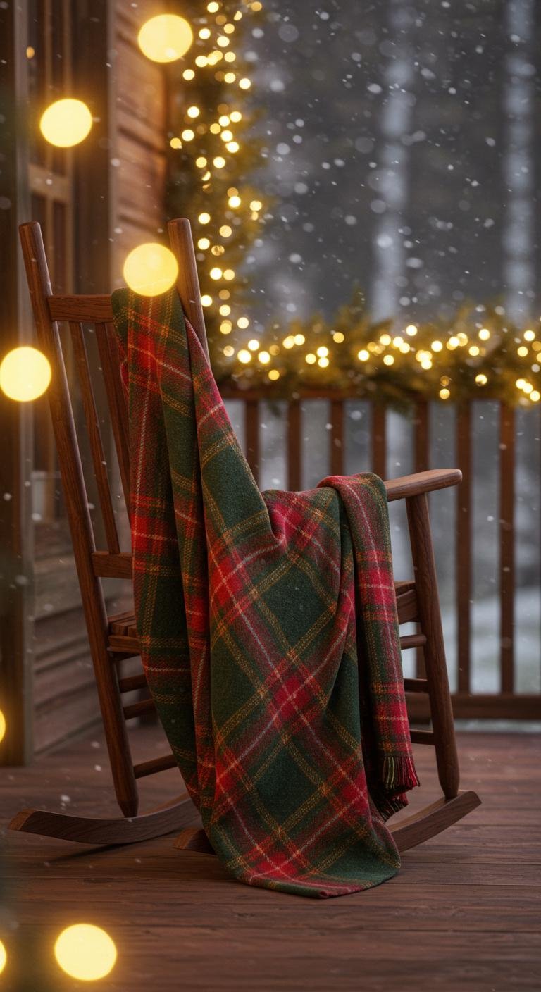 Nothing beats throwing a cozy plaid blanket over a rocking chair or bench to instantly invite people to sit and chill. You can grab some affordable throws at local shops or upcycle ones you already have. It adds a pop of warm color and texture that screams holiday comfort — plus, it actually makes your porch feel hug-worthy.