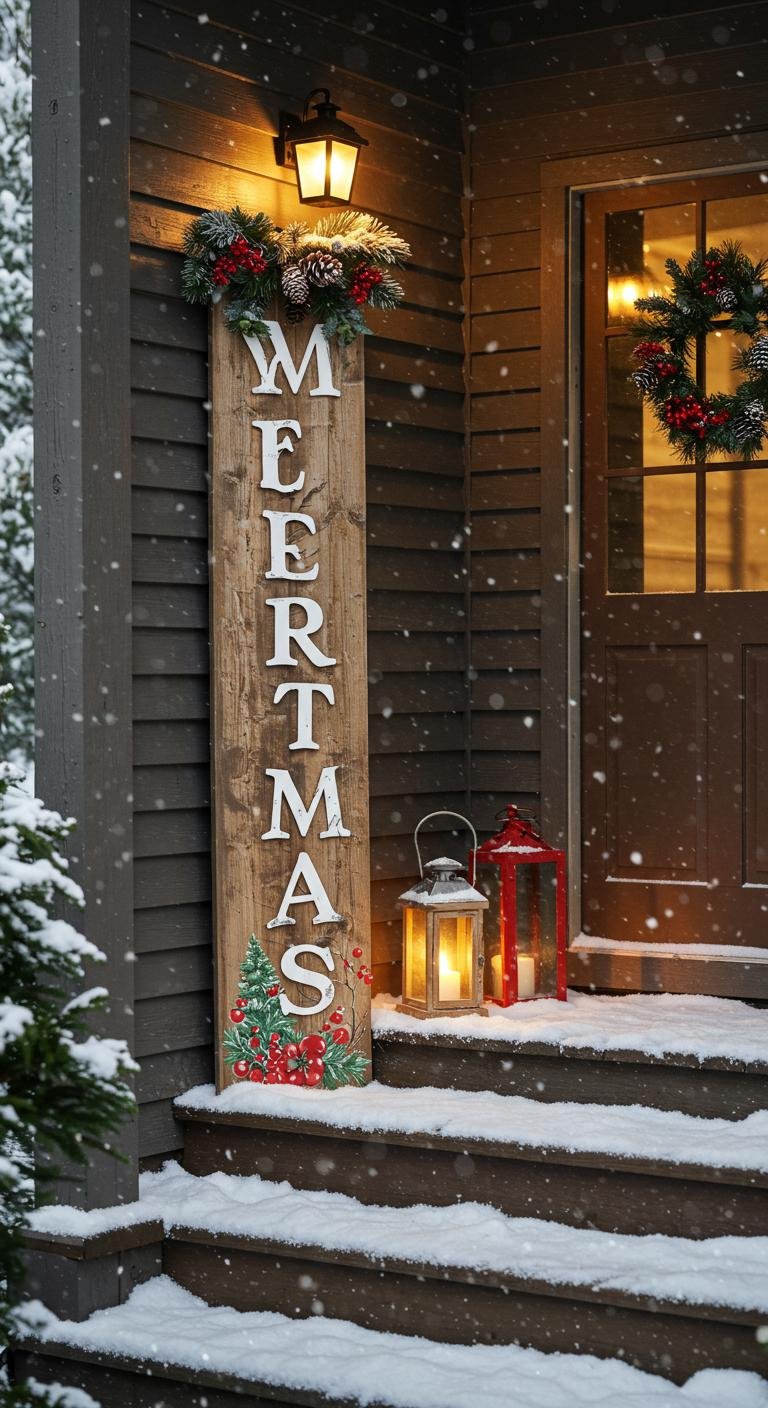 Who doesn’t love a good welcome sign that sets the tone before you step in? Use reclaimed wood to craft one with witty or sweet festive phrases like “Merry Christmas” or “Welcome to Our Home.” You can find easy DIY kits or simply paint your own with stencils and weatherproof paint so it lasts through the season. It’s a simple detail that feels incredibly personal.