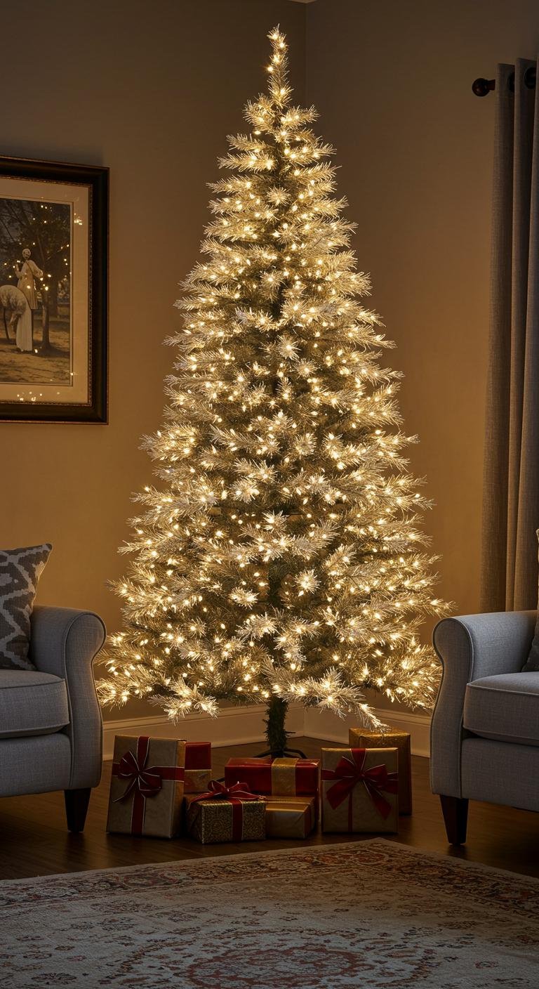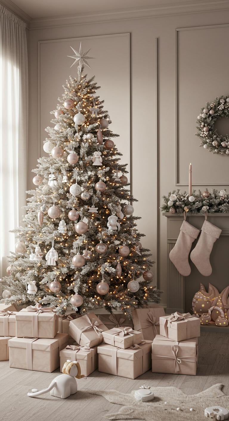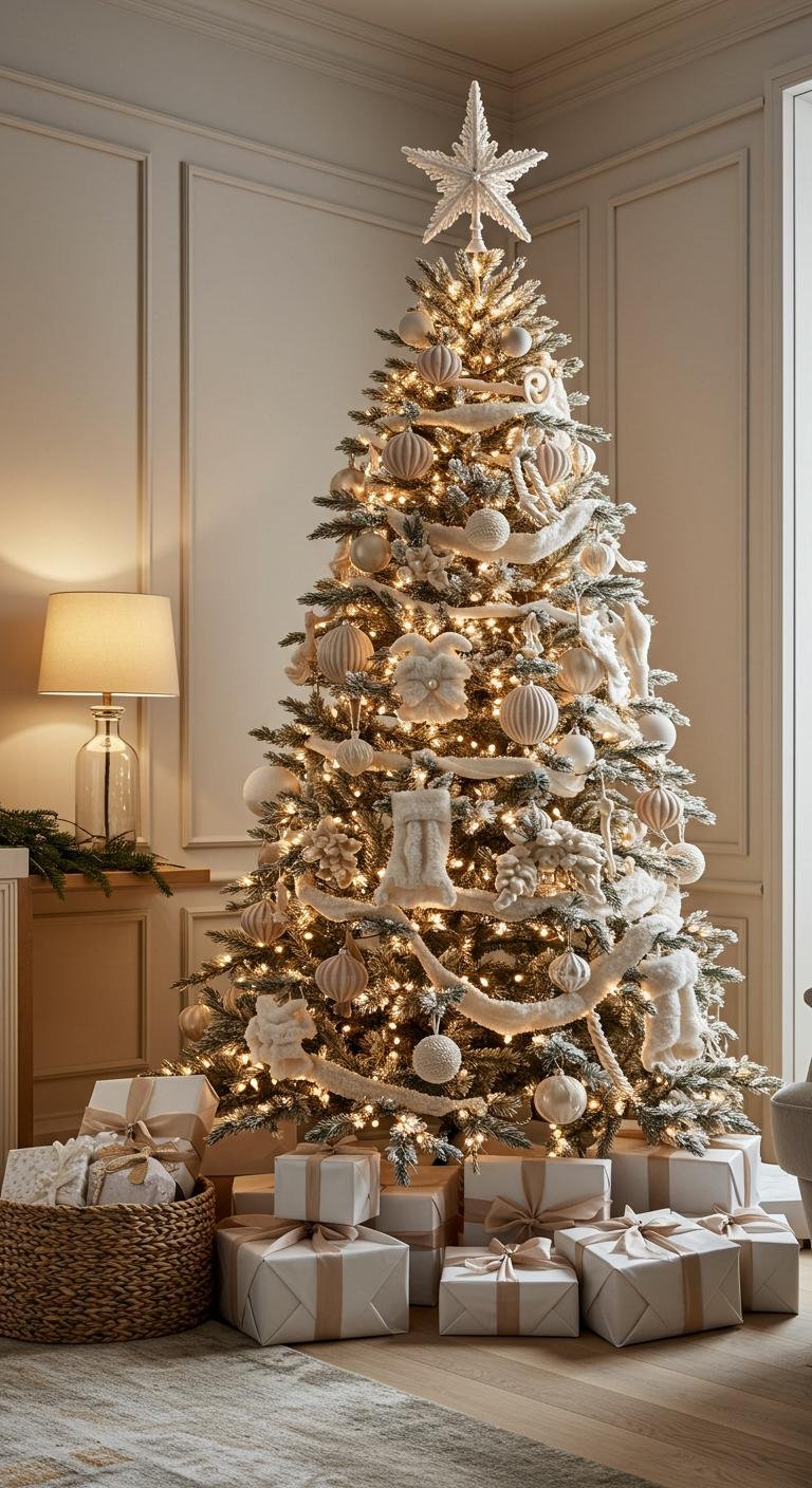 The glow of your Christmas tree sets the whole mood. Warm white LED string lights are unbeatable for a cozy, inviting feel that complements a neutral theme perfectly. Ditch the bright, colorful bulbs and opt for hidden lights nestled inside the branches—they add a magical sparkle without overpowering your decor. Soft lighting around the tree turns your space into a welcoming spot for family stories and winter memories.