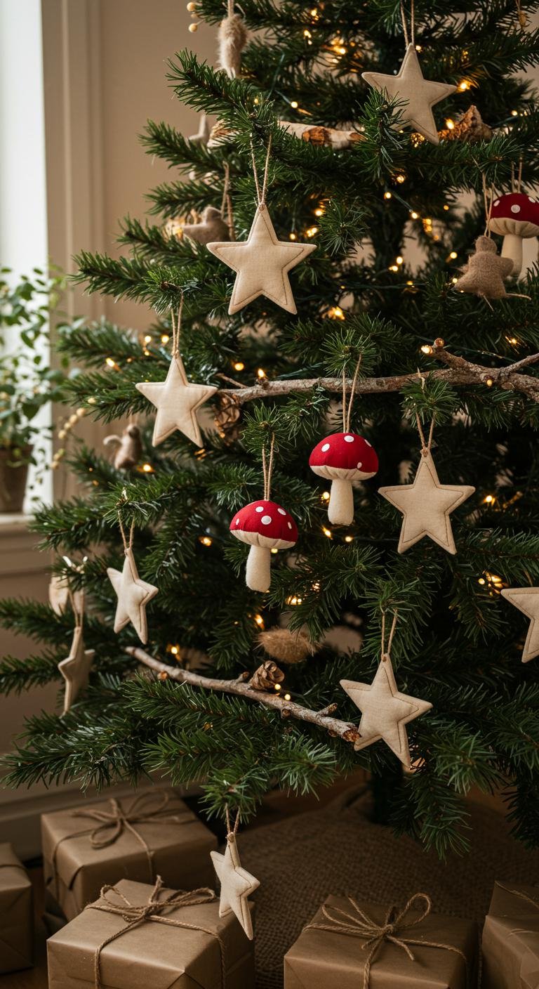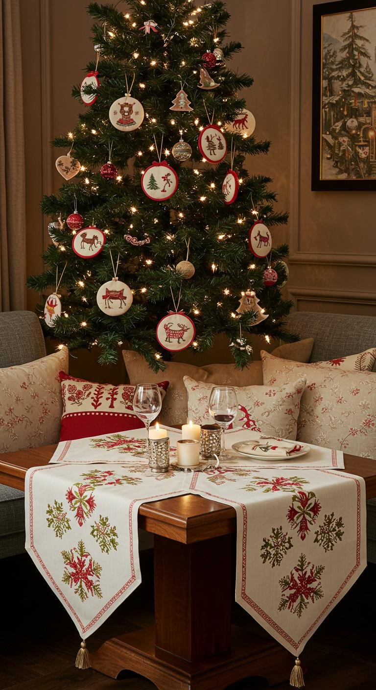 Textiles add such a warm, personal touch to your tree’s look. Think embroidered stockings, decorative cushions, or even handmade fabric ornaments made from scraps—so crafty and charming! You can also create a festive table runner or some unique tree toppers using seasonal designs. These little homemade details give your decor that authentic Scandinavian coziness and a sweet hint of nostalgia.