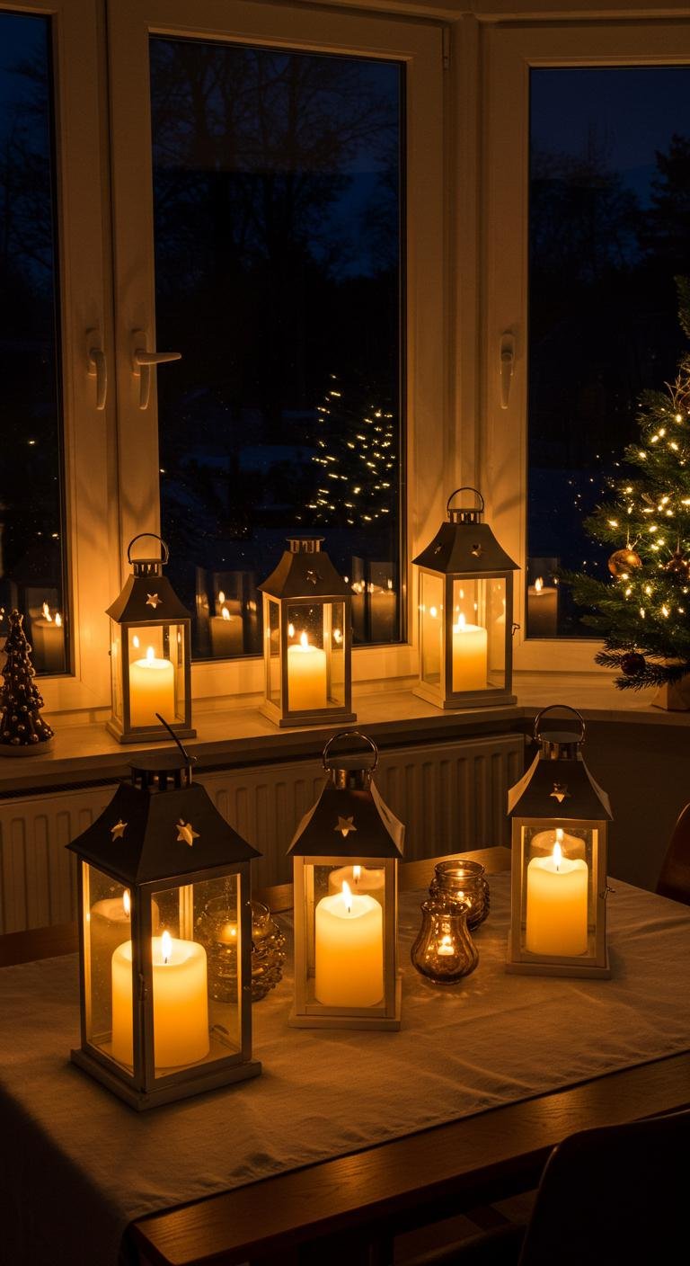 Thoughtful candle lantern placement, whether on windowsills or dining tables, invites tranquility.