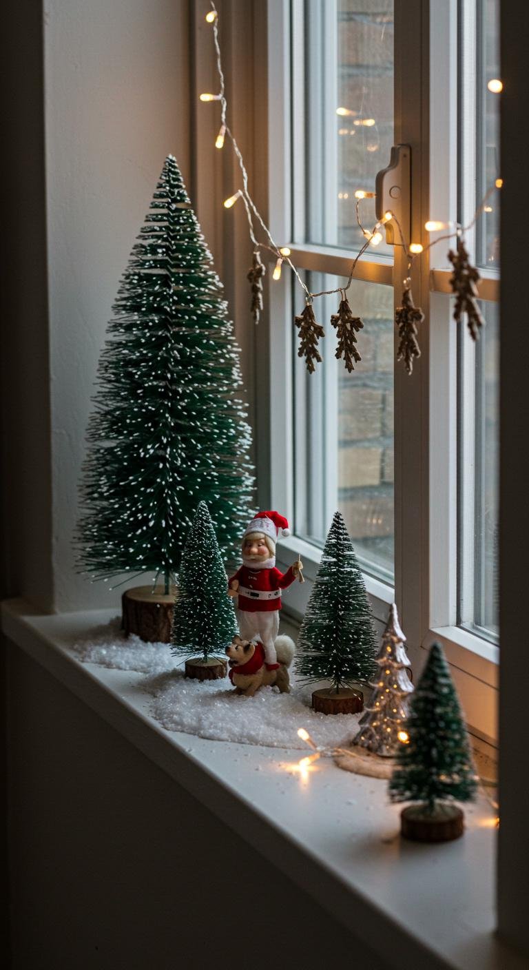 Arrange charming miniature trees alongside twinkling lights and delightful window accents.