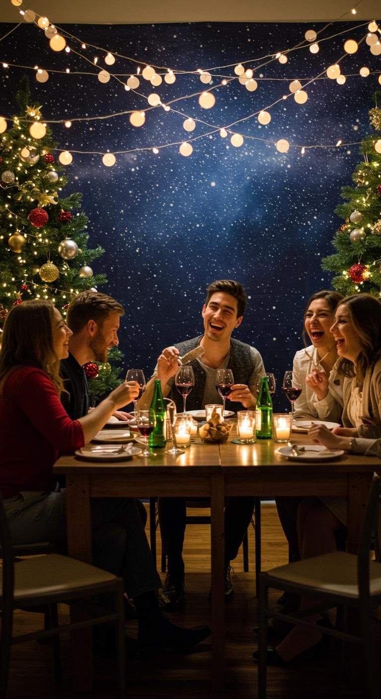 Transform your holiday gatherings with an enchanting starry night backdrop that bathes your space in ethereal light.