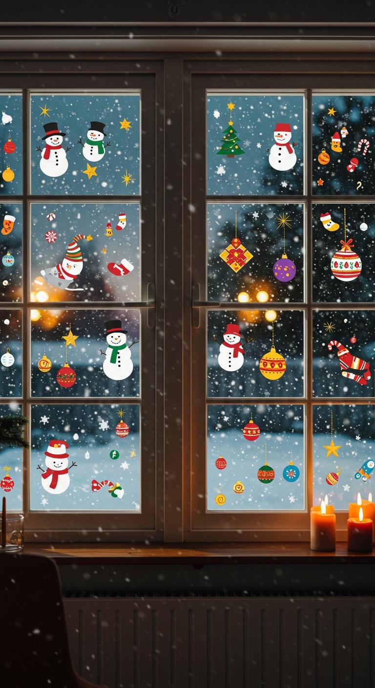 Embrace a world of holiday window themes with festive adhesive designs that sparkle and shine.