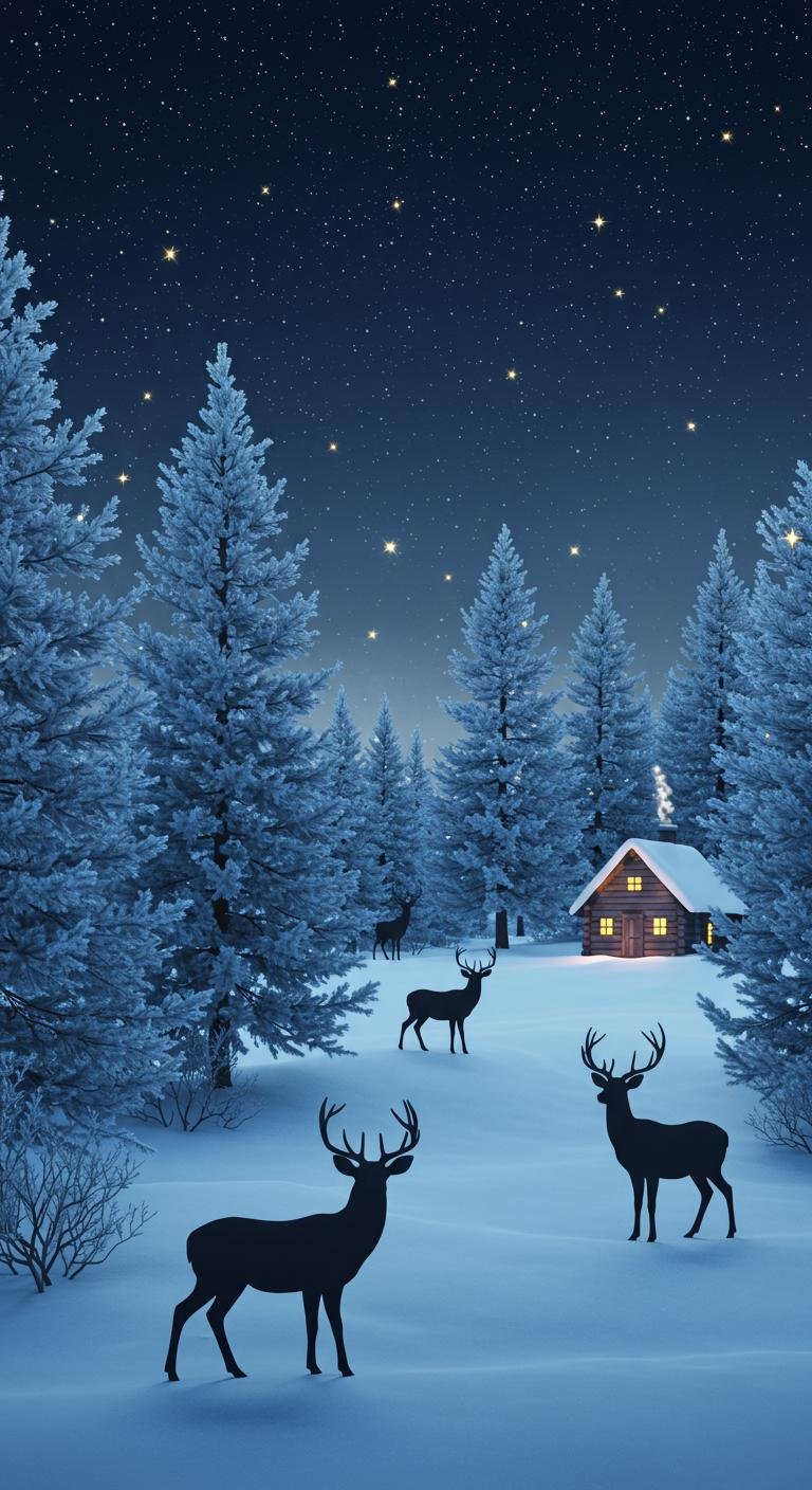 Picture a peaceful forest with graceful deer or twinkling stars above a cozy cabin.
