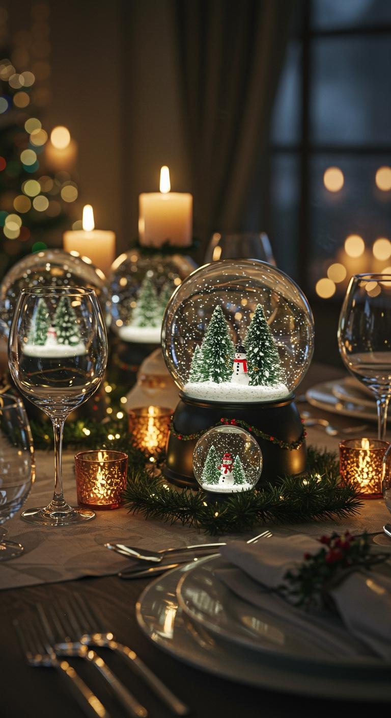 Adding a touch of whimsy to your holiday table, snow globe centerpieces enchant guests and spark nostalgia.