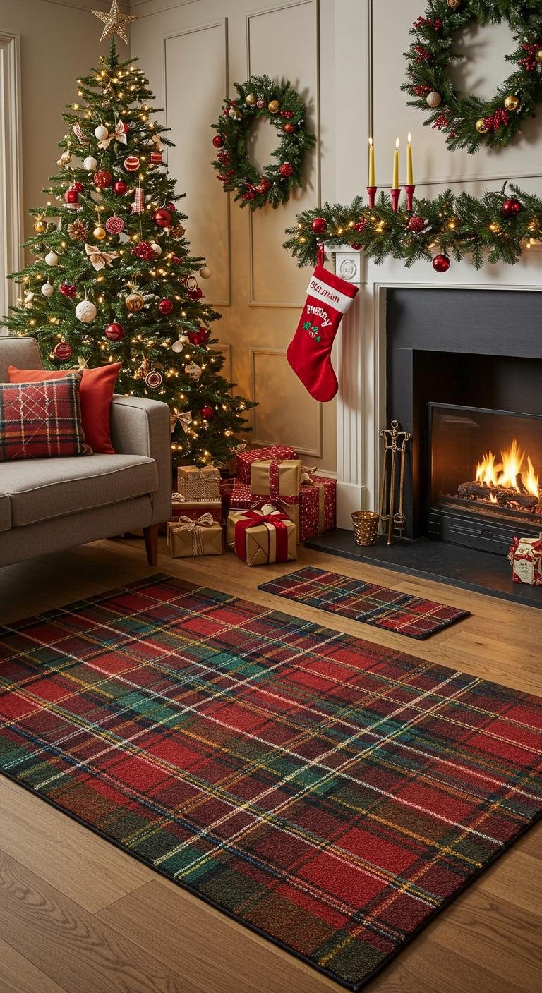 There’s something undeniably charming about incorporating tartan rugs into your festive decor.