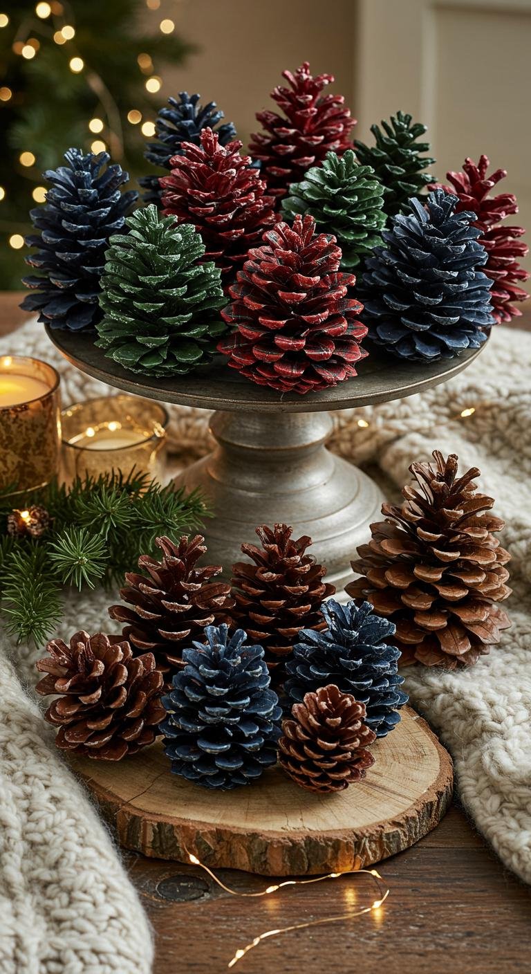 Tartan pinecone arrangements bring a rustic charm to your holiday decor, infusing your space with warmth and a touch of nature.
