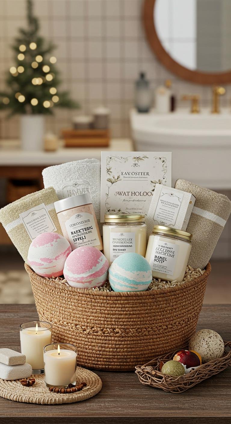 If someone you know deserves a little R&R, a spa-themed gift basket is pure gold. Think bath bombs, scented candles, luxe lotions, and maybe a soft robe or plush towels to really set the vibe. You don’t have to spend a fortune—look out for sales at drugstores or even whip up your own goodies like a sugar scrub in a cute jar. It’s a mini retreat in a basket, perfect for melting away the holiday hustle and bustle.