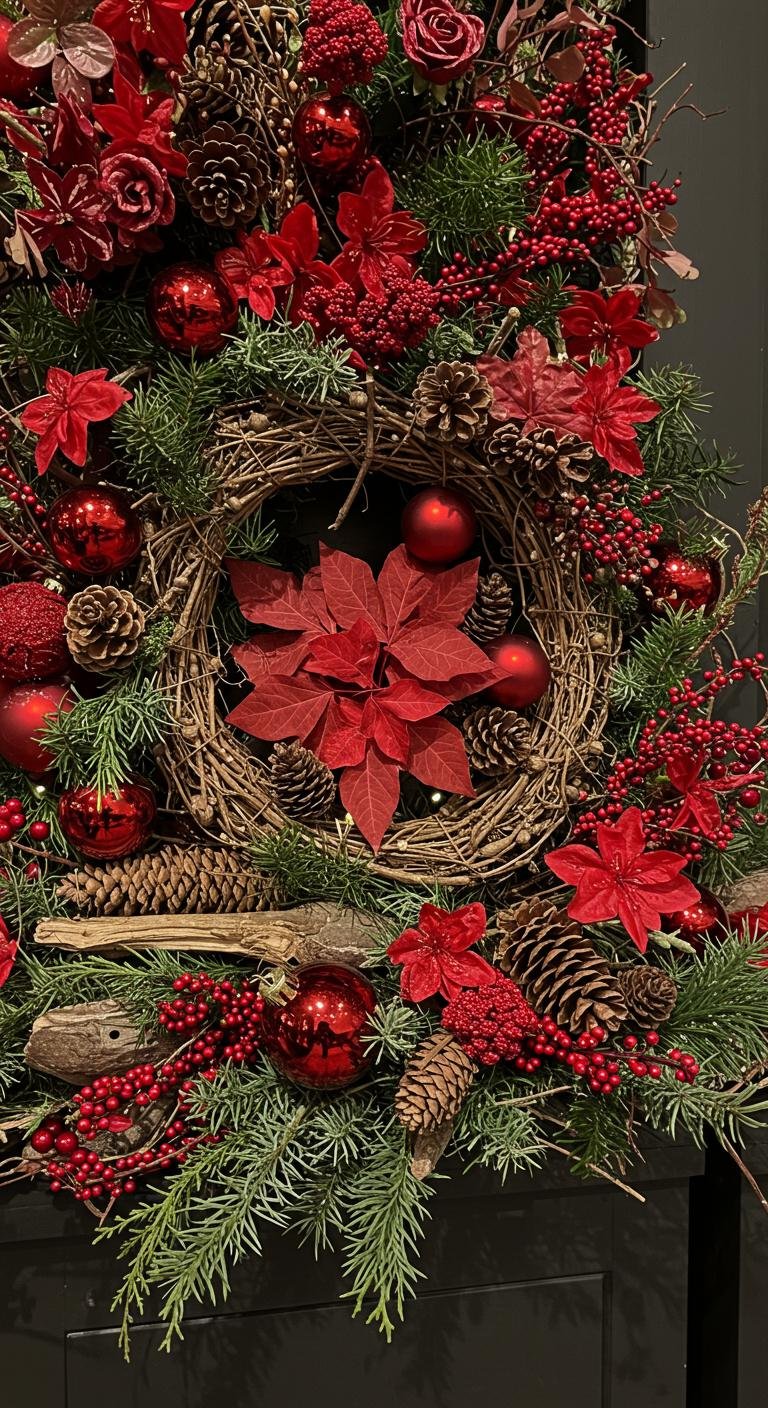 Alright, texture lovers—this one’s for you. Mixing glossy, matte, and glittery red ornaments creates serious depth and interest. Throw in some velvet ribbons or woven decorations and watch your tree or mantel pop. Handmade goodies like pinecones painted red or wrapped in yarn add this adorable personal touch. Not only does it make your space look curated, but it’s also super fun to craft and budget-friendly.
