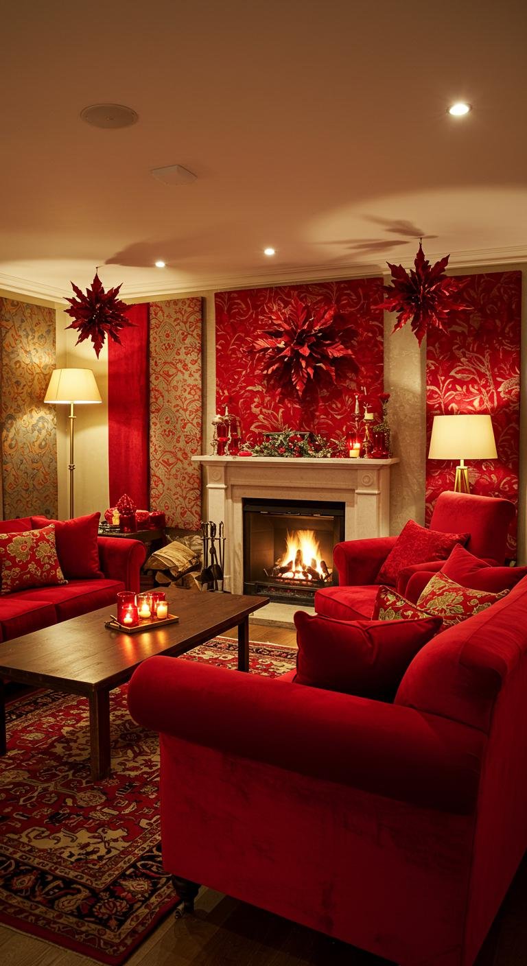 Want that warm, inviting holiday glow? Mixing soft browns and whites into your red setup nails it. Imagine a wooden mantel decked out with red poinsettias and flickering white candles. Use neutral fabrics like burlap or linen for table runners—they add this organic charm. Rustic wooden ornaments or DIY pieces made from branches painted red can amp up the cozy factor without breaking the bank. Seriously, it’s like wrapping your home in a comfy holiday hug.