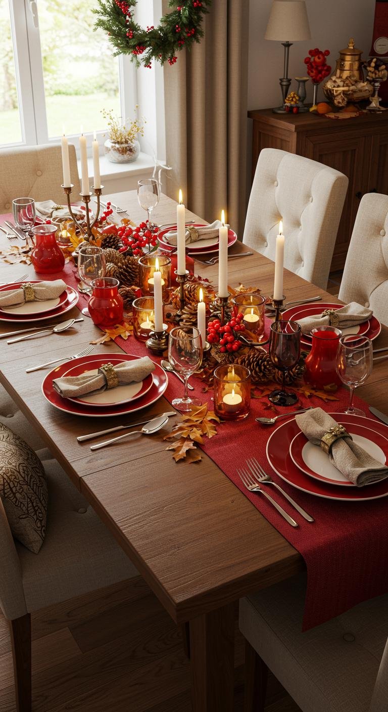 Easing out of fall and into holiday mode? Blend in some autumn hues like burnt orange with your reds for a smooth transition. Decorate your mantel or table with rustic pumpkins and red leaves to amp up the cozy feels. Keep an eye out for fall clearance sales—you’ll snag great pieces without the splurge while keeping your home stylish as the seasons change.