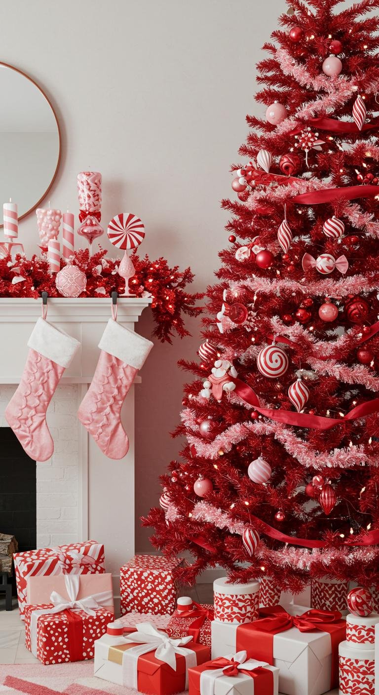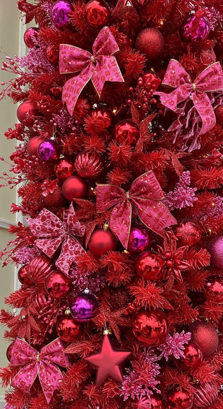 Here’s a playful twist: mix bright red with vibrant pink for a fresh, modern spin on holiday decor. It’s perfect if you want something a little less traditional and a lot more fun. Think candy-inspired baubles combining both colors, pink bows tossed over a red tree, or wreaths bursting with faux flowers in these tones. Bonus: this is a great chance to dig through your craft supplies and make some quirky DIY ornaments that’ll fit this lively vibe perfectly.