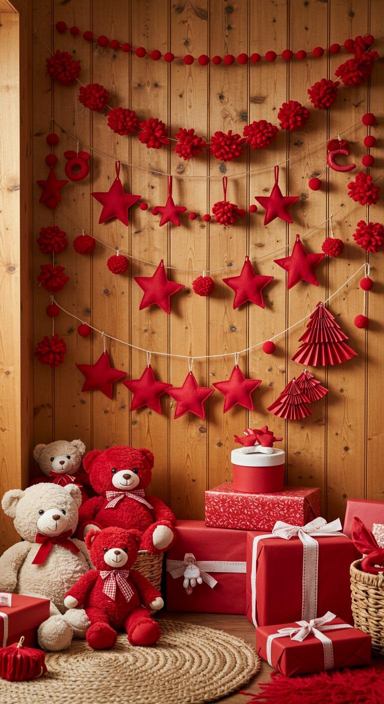 Want your little ones to feel included? Add bright, whimsical red decorations like fun ornaments and playful garlands that spark their imaginations. Make DIY crafts together using safe materials like felt or popsicle sticks—then proudly hang their creations on the tree. It turns decorating into a bonding moment and fills your home with joyful, personal touches.