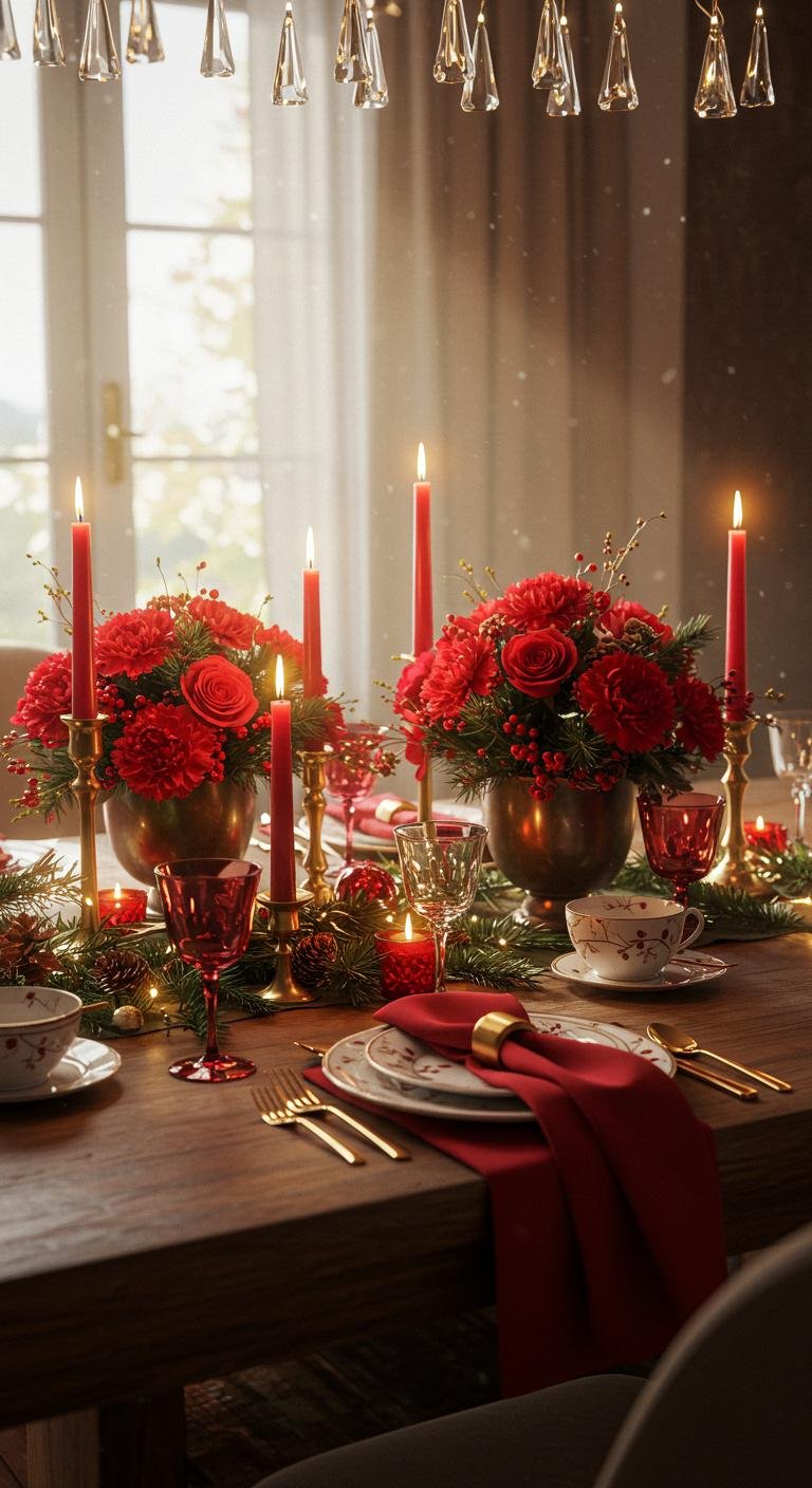 Hosting holiday meals? A red-focused tablescape pulls everything together for that festive spirit. Use red dinnerware and napkins, layering in metallic or rustic details for a wow factor. Fresh flowers or greenery down the center add life, and mason jars wrapped in red fabric make charming DIY centerpieces. It’s a warm, cost-friendly way to welcome loved ones to the table.