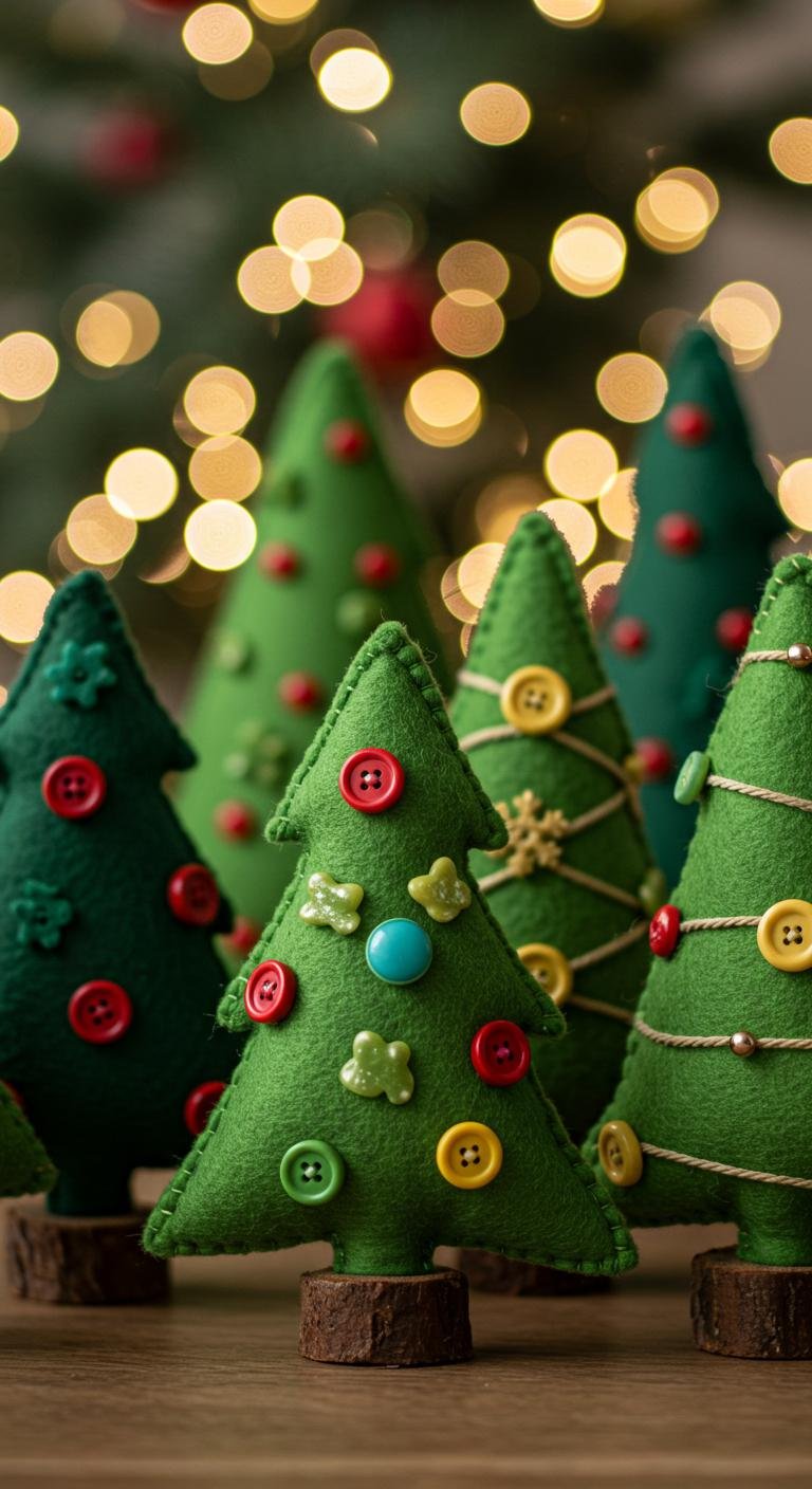 Cut out tiny felt tree shapes and layer them up with glue or stitching. Decorate with buttons, sequins, or beads to make each one uniquely charming. Add a hanging string, and suddenly you’ve got a whimsical little forest to scatter through your holiday setup. These are perfect for crafting parties or when you just want a small, sweet project that spreads the cheer.