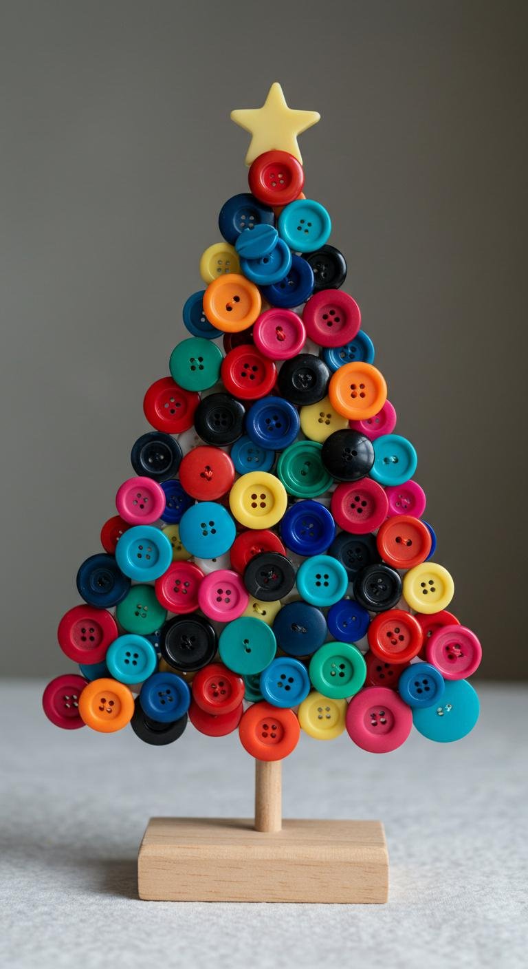 Leftover buttons? Perfect! Stack them into a tree shape and glue ’em down. Don’t forget a tiny star button for the top—it finishes off the look just right. This project is quick, kid-friendly, and great for fine motor skills while making something downright adorable. Show off your button trees on the tree itself or gift them to someone who’ll adore the handmade charm.