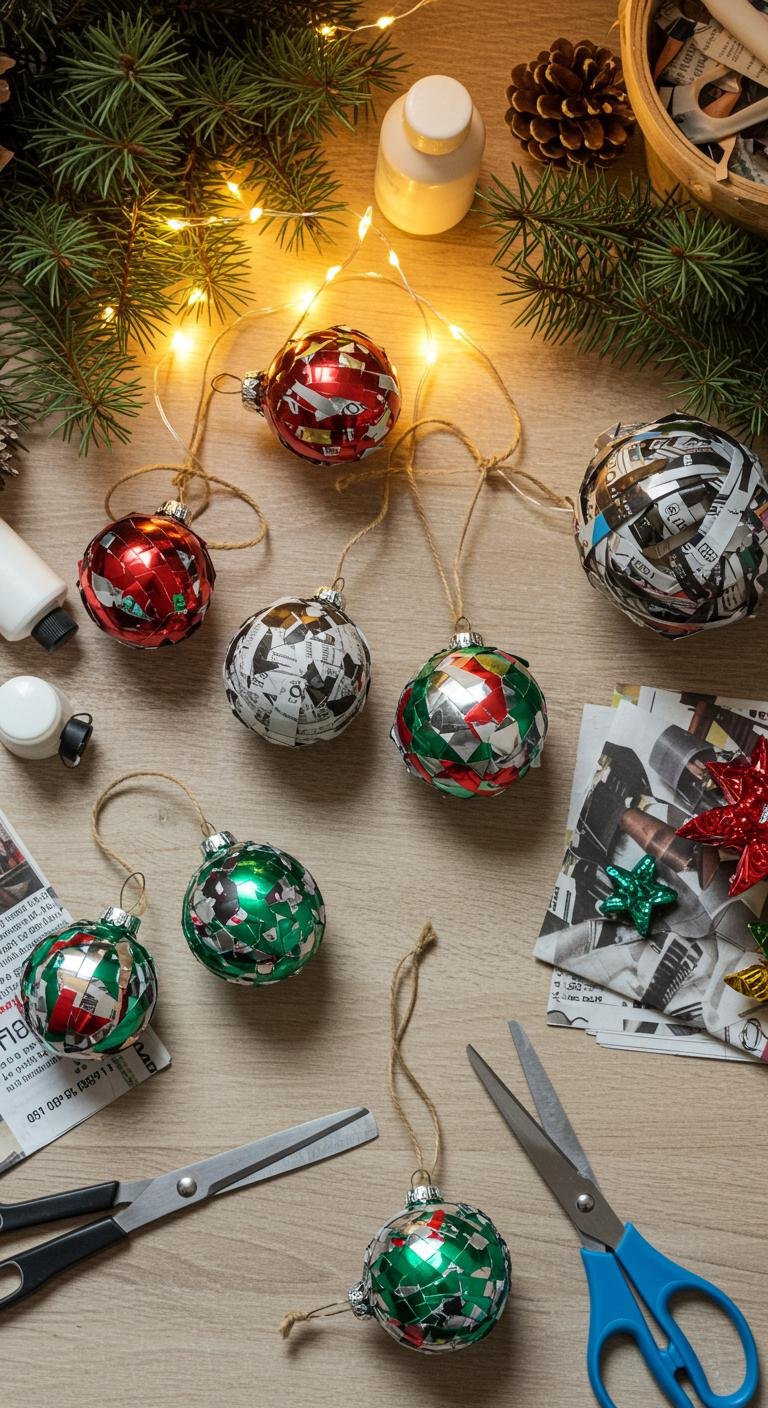 Who knew yesterday’s headlines could make tomorrow’s decorations? Cut newspaper into strips and roll or fold them into balls and baubles. Glue everything in place and maybe add a bit of color if you’re feeling fancy. This project is not just fun — it’s a clever, eco-friendly way to reuse what you already have at home. Hang these whimsical accents on your tree or scatter them around the house for a playful touch of recycled charm.
