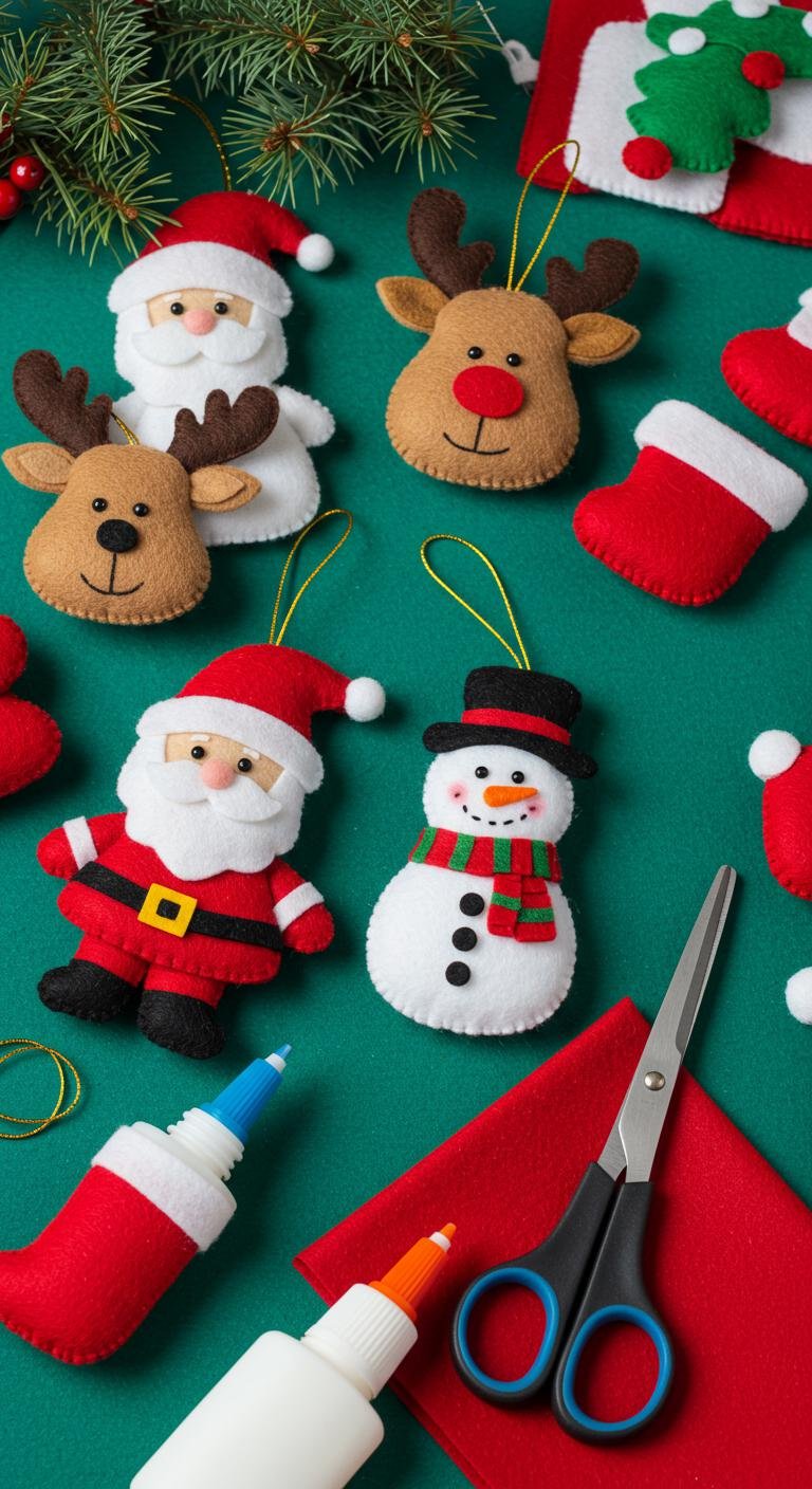 Get ready to make some adorable felt friends for your tree! Cut out shapes for jolly Santas, snowmen, reindeer—you name it. Sew or glue the pieces together, add buttons for eyes, and yarn for scarves or hair. This is a child-friendly craft that lets little ones practice their cutting and gluing skills. The results? Charming, playful ornaments that bring a warm glow to your holiday décor and double as heartfelt gifts.