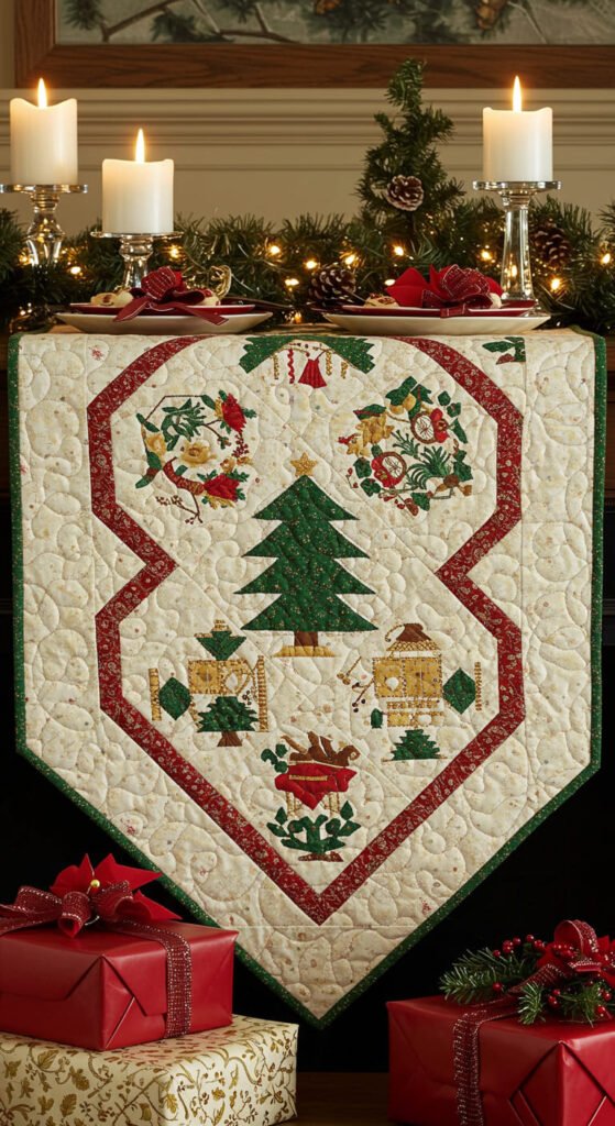 You’ll love the charm of intricate quilt patterns draped over mantels or used as table runners. With colorful holiday stitching, these pieces evoke a sense of nostalgia, celebrating the spirit of the season while showcasing your unique style and creativity.