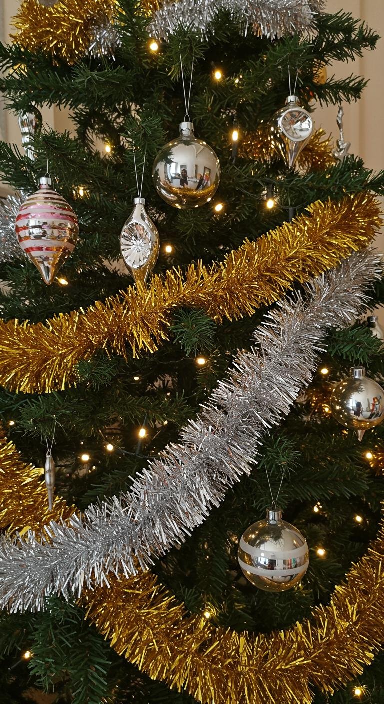 The varied tinsel textures catch the light beautifully, creating a magical atmosphere.