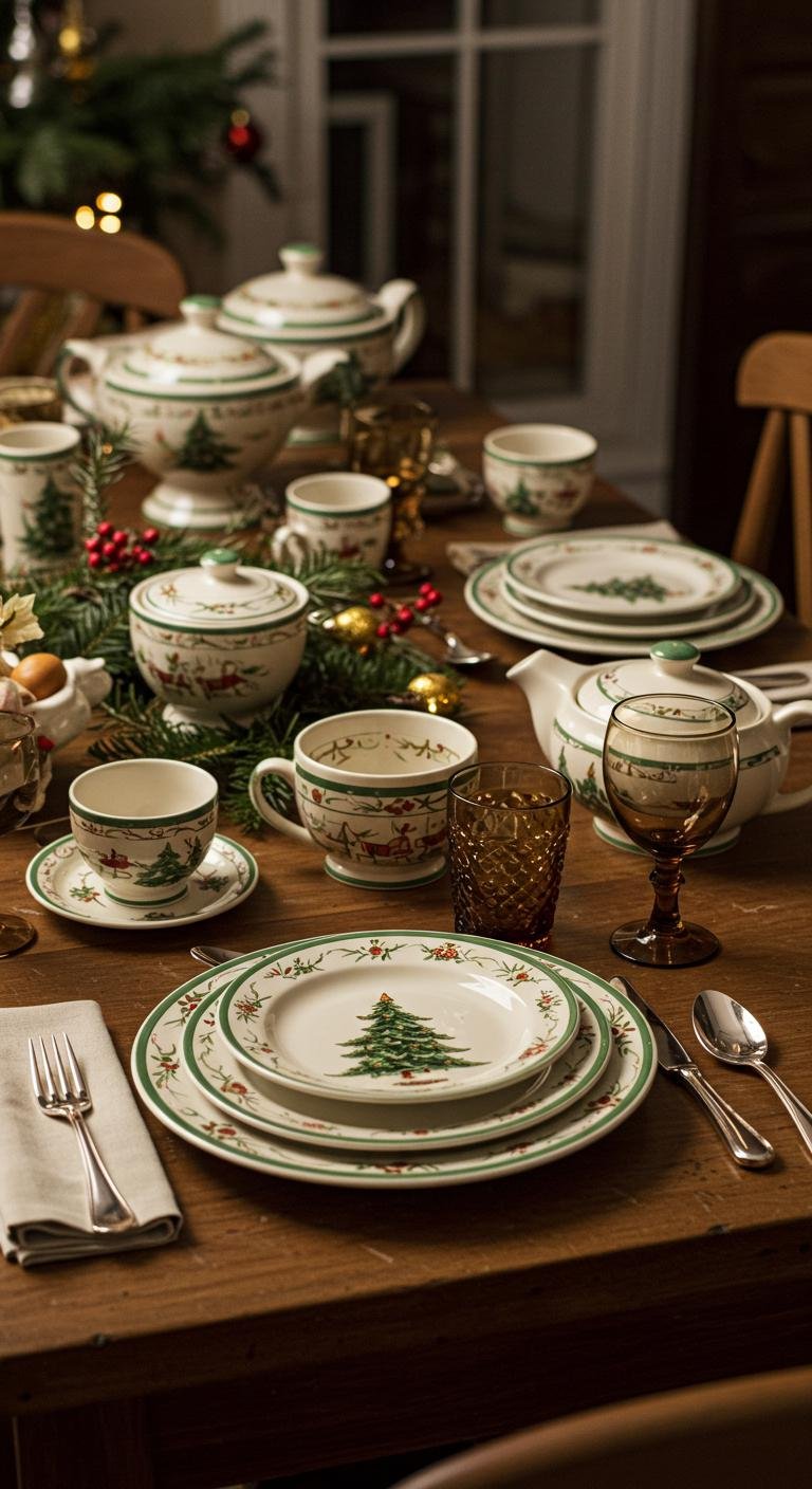 Picture hand-painted dishes, lovingly crafted with festive designs, gracing your table. Vintage servingware enhances the nostalgic atmosphere, inviting stories with every meal.