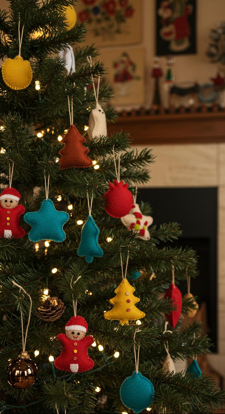 Felt Christmas ornaments add a soft, tactile charm to your holiday decor, perfectly blending warmth and whimsy.